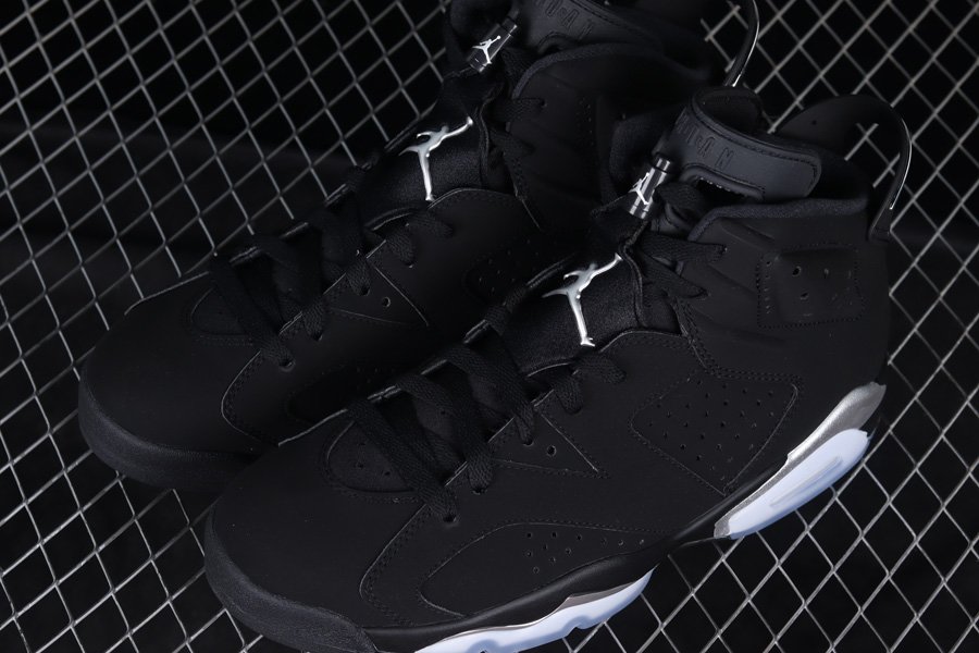 The metallic texture is reminiscent of the classic “Chrome”, and the original silhouette is now available in this colorway. The entire upper is constructed with a matte nubuck reminiscent of the classic “Black/Infra Red,” while the spoiler-like heel and midsole are designed to further accentuate the metallic silver luster. The outsole is covered with clear rubber, symbolizing the “AJ6,” adding a touch of coolness to the heavy color scheme.