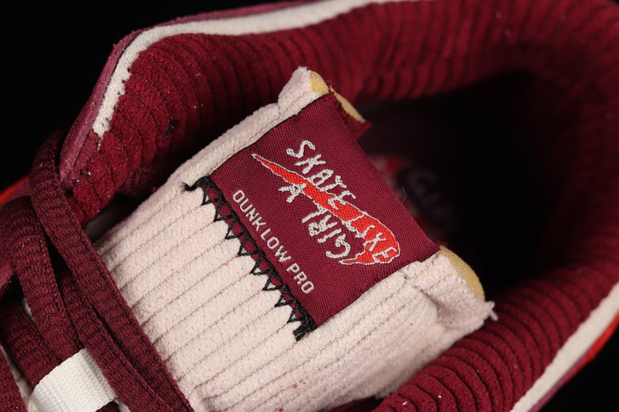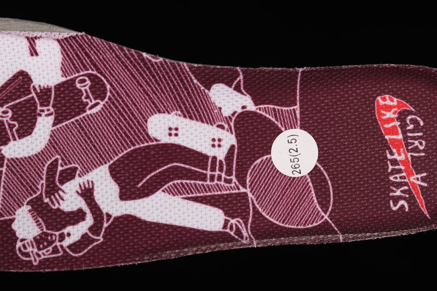 This Dunk Low rocks a burgundy nubuck on its overlays. Bright orange profile Swooshes sweep across both sides of the shoe with a textured stripe finish. Skate Like a Girl branding can be found on the tongue tabs accompanied by reverse Swooshes in orange, opting for subtly scored leathers. The graphic insole depicts the Skate Like a Girl inclusive community together with the co-branding found on the tongue tab. The Nike text logo is embroidered in orange on the burgundy heel tab and right below it is the Skate Like a Girl logo with two hands intertwined. A pure white midsole and a gum rubber outsole round out the sneaker’s look.