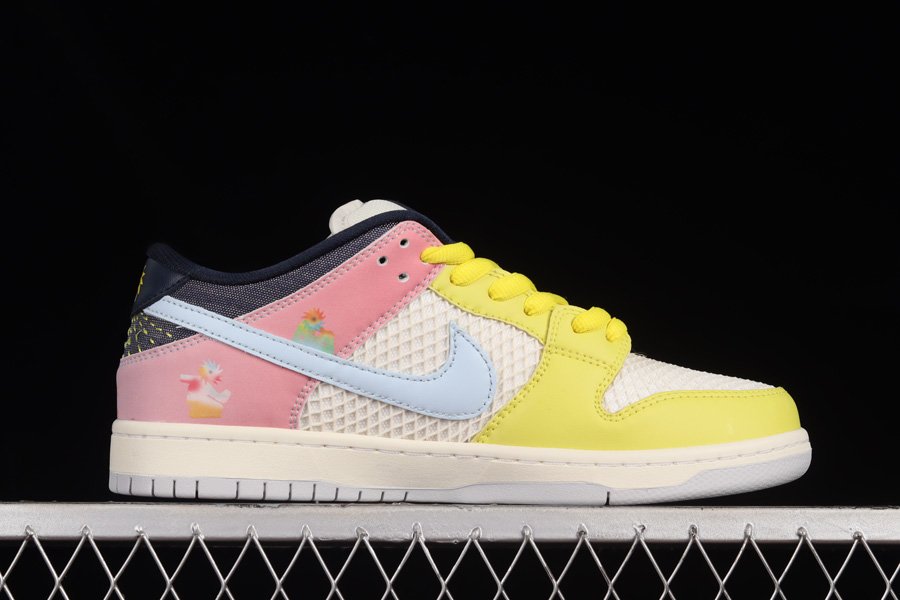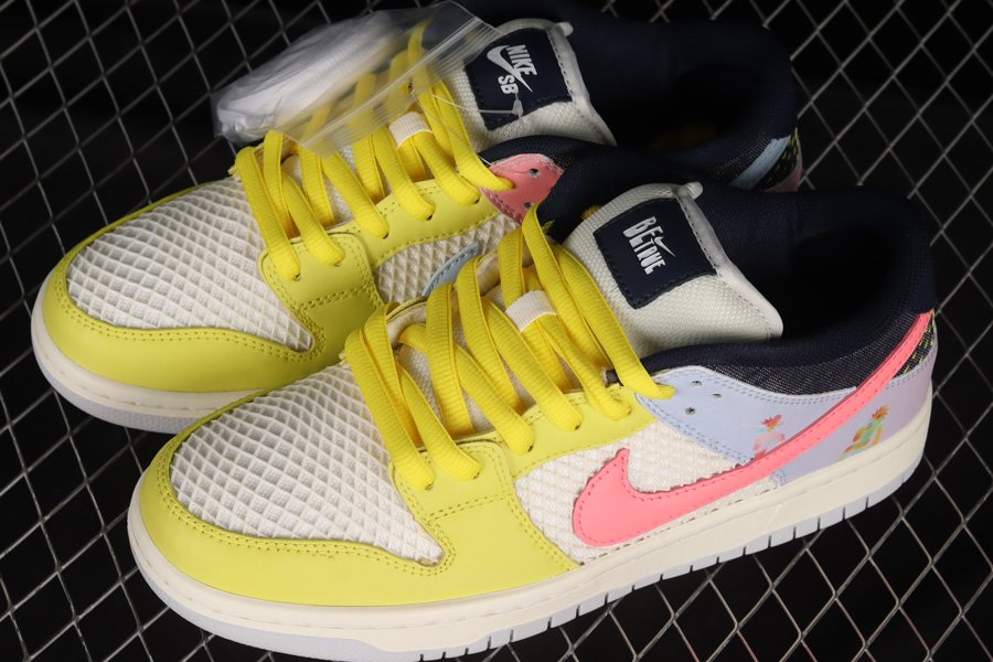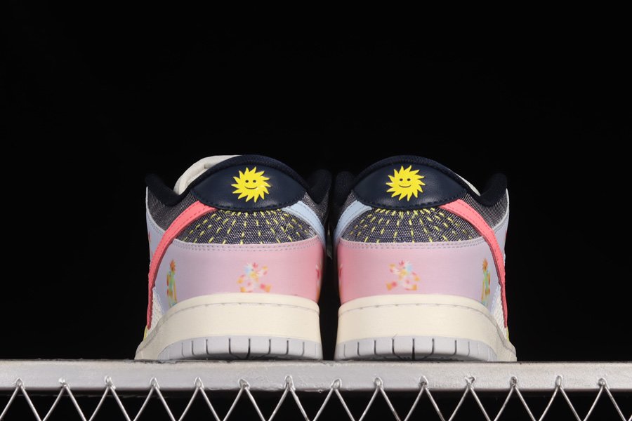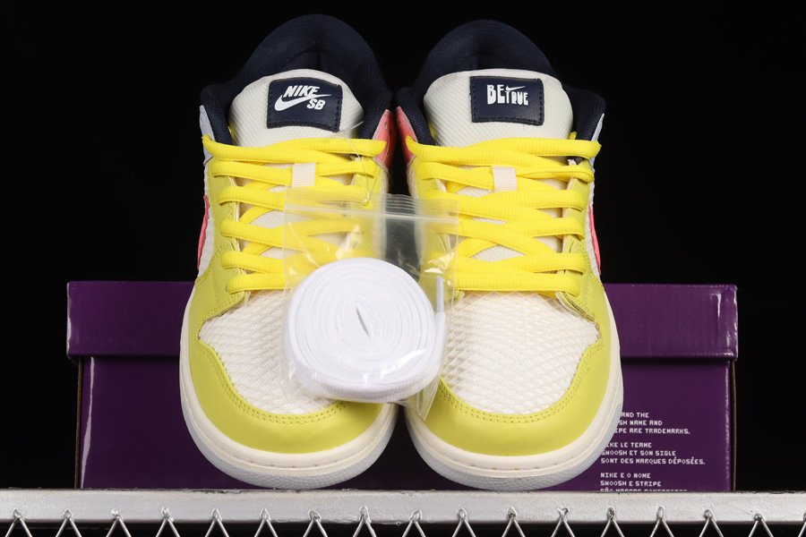This Nike Dunk Low combines various pastel shades and materials. Different graphics are used throughout while ‘Be True’ branding hits the tongue and insoles. Other details include a smiling sun on the heel tab, White on the midsole, and a Light Purple rubber outsole.