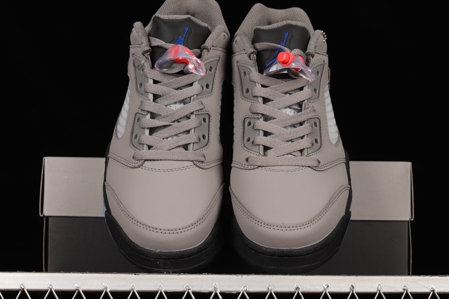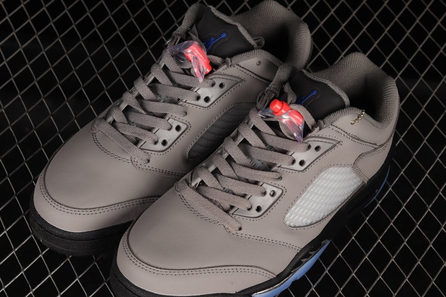 Paris Saint-Germain (PSG) soccer club and Jordan Brand have joined forces for yet another sneaker collaboration this time working on the Air Jordan 5 Low. This collaborative Air Jordan 5 Low gets covered in an official color makeup of Pumice, Game Royal, Black, and Plum Eclipse as the shoe starts off by featuring a grey nubuck construction. Black detailing is then noted on the rubber midsoles along with grey tongues and icy blue translucent outsoles. Finishing details include “PANAME” tags on the lateral side panels, clear mesh netting, “Paris” behind the tongues, red lace locks, and a red stamp on the heels wrap things up.