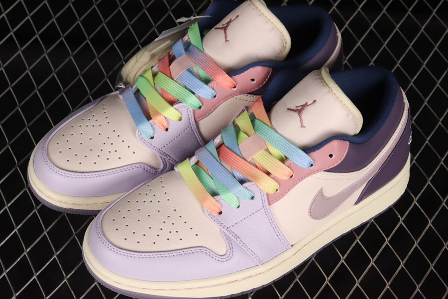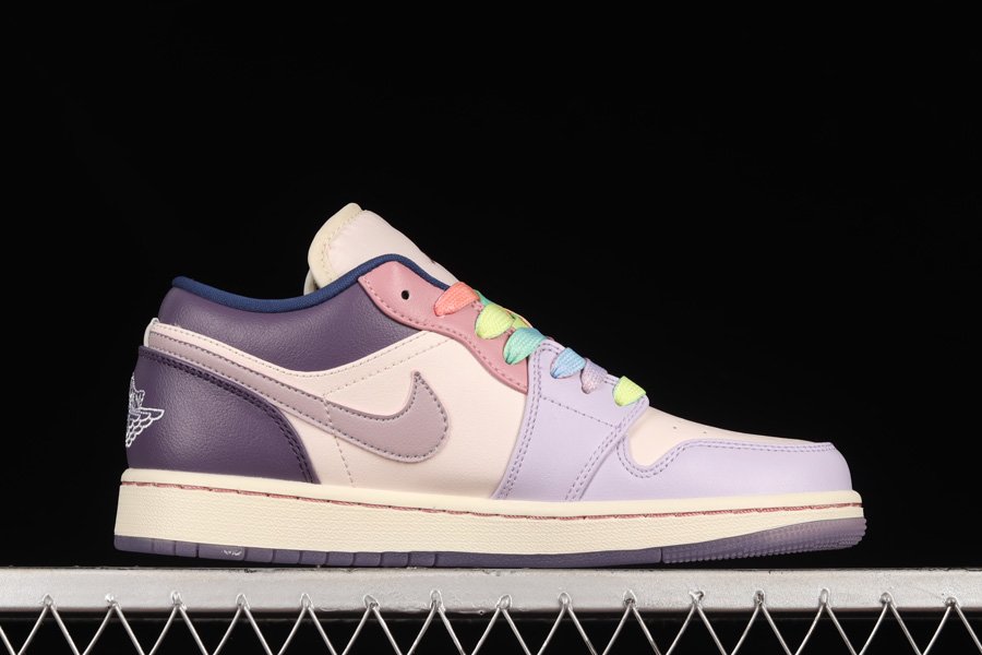 The Air Jordan 1 Low features a full smooth leather construction throughout the upper in a wide array of colors which include light and dark purple, light and dark pink, as well as Sail. Finishing details include pink Jumpman logos on the tongues, embroidered Wings logos on the heels, Sail rubber midsoles, and purple translucent outsoles.