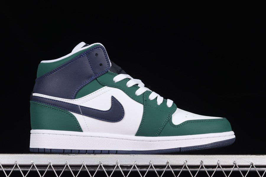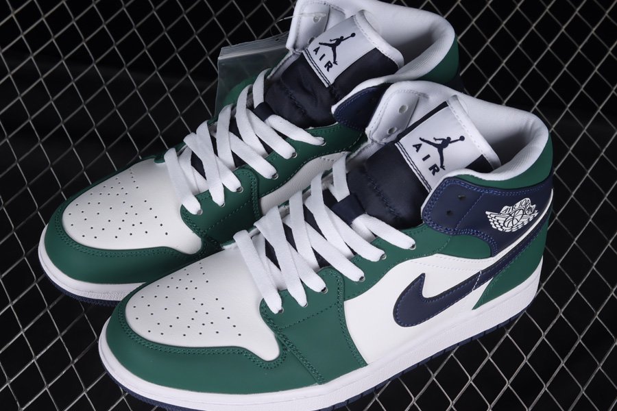 The Air Jordan 1 Mid comes dressed in White leather used on the side panels and toe box that’s then offset by the Green and Navy leather overlays. Other details include the Navy Jumpman on the White tongue tag, as well as the additional White accents on the laces, Wings branding, lining, and midsole. A Navy rubber outsole round out the main features of the sneaker.