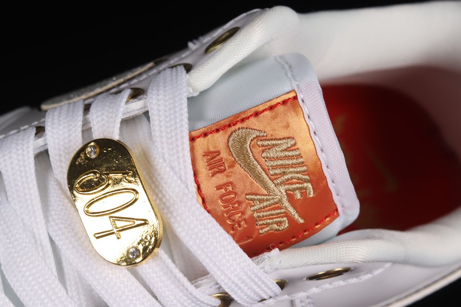 This offering of the Air Force 1 gets covered in White all over the upper in both smooth and patent leather with tonal detailing on the tongues, laces, inner liner, and the entire rubber sole unit. For a pop of color we see the addition of Metallic Gold on the metal eyelets, heel tabs, special “504” lace locks, tongue branding, and the NOLA insignia on the lateral heel. Sparkling silver Swooshes with gold outlining, gold lace tips, and a red and gold gradient insole finish off the look on this Nike Air Force 1 Low.