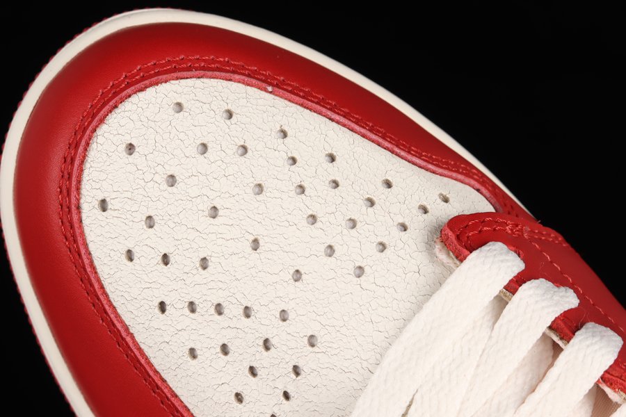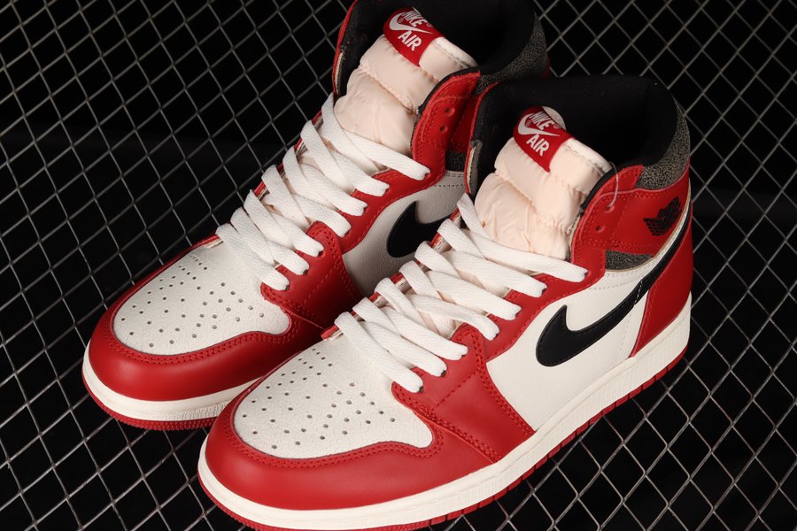 The Air Jordan 1 High OG “Chicago Reimagined” comes with a 1994 AJ1 release construction. Defined by a distinct heel shape, larger midfoot Swooshes and structured toeboxes. The shoe itself expresses the familiar “Varsity Red/Black/Sail/Muslin” colorway accented by cracked leather detailing. Elevating the shoe are off white tone midsoles paired with contrasting weathered red rubber outsoles.
