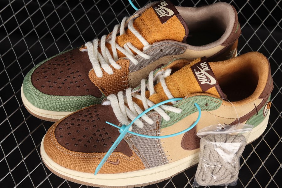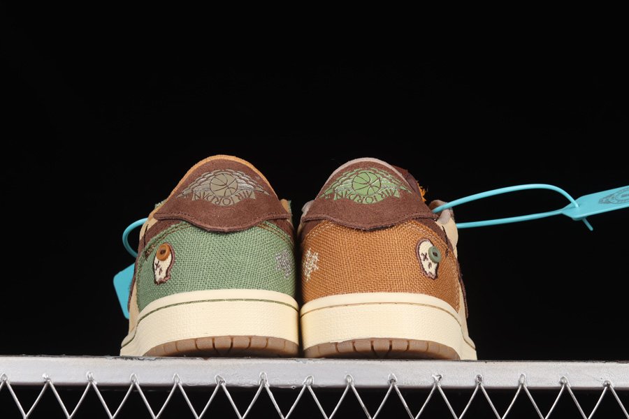This Air Jordan 1 Low features a Flax, Muslin, Fauna Brown, Oil Green, Sesame, and Moon Fossil color combination. Constructed with canvas, hemp, and suede, one of the highlights is a voodoo skull logo on the lateral heel. Next, the Wings logo on the heels is upside down, as well as the Nike Air branding on the tongue. Lastly, we have Zion’s name on the right insole and ‘Voodoo’ on the left.
