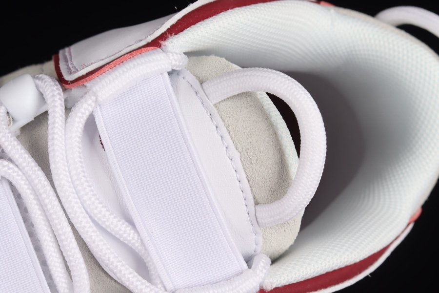 Done in a White, Team Red, Summit White, and Best Grey color scheme, this sneaker is highlighted by the leather and suede construction, where Best Grey takes care of the underlays and White is found on the overlays and “AIR” text. The sneaker is then detailed with Team Red contrasting accents, a White midsole and Black outsole.