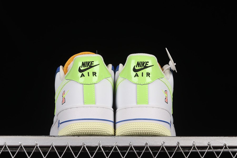 The Nike Air Force 1 Low “Player One” boasts a clean white leather base which acts as the perfect background for the colorful hits of “Laser Orange,” “Ghost Green,” and “Spring Grey Heather” on the mesh and patent leather materials to shine through. Nods to the gaming world include the embellished tongues along with the “Number 1” graphic spotlighted on the lateral heel.