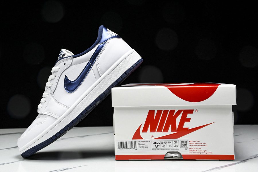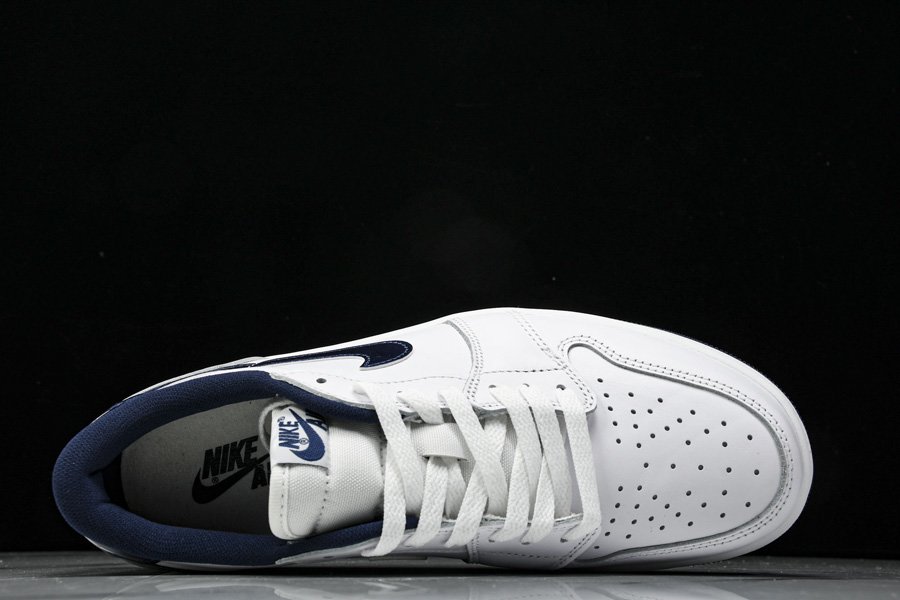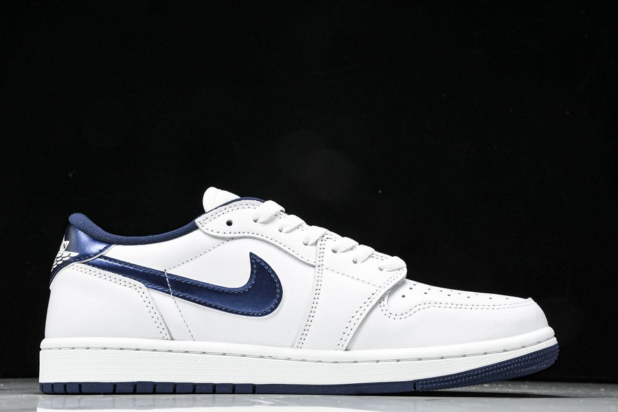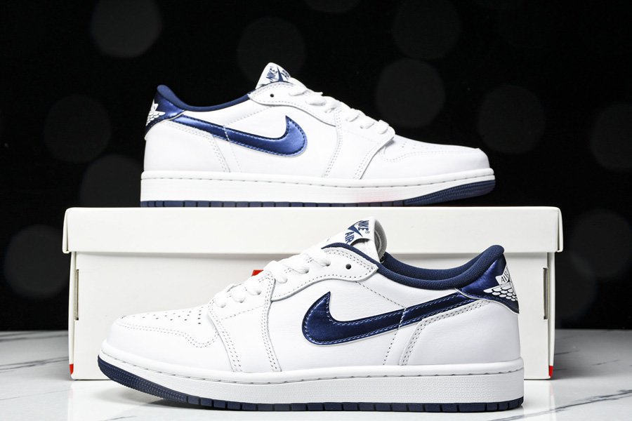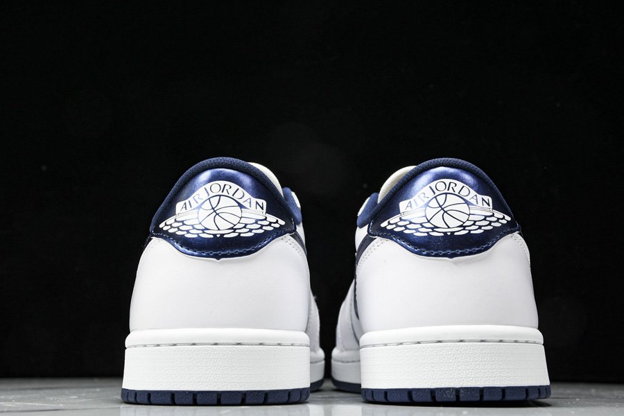 Dressed in a Summit White, Navy, and White color scheme. This offering of the Air Jordan 1 Low is expected to look exactly like the original release. It will feature a White leather upper with matching nylon tongues. Highlighting the shoe are Navy Blue with Metallic finishes on the Swoosh logos and heel tabs. Navy continues onto the “Nike Air” tongue labels and rubber outsole while sitting atop a Summit White midsole to complete the design.