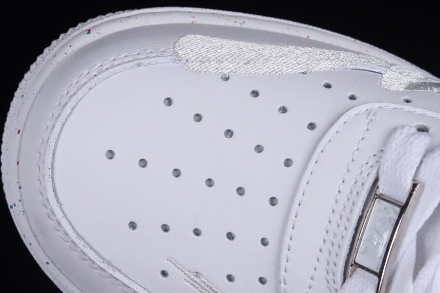 Nike and basketball are synonymous as the Swoosh pays tribute to the sport with this Nike Air Force 1 Low “Leap High”. This low top version of the classic Uptown starts off with an all-white leather construction all over the upper with colorful embroidered Swooshes hitting both side panels of both shoes. Signature design highlights include graphic basketball-celebrated insoles, “Just Do It” on the lateral toe, “Leap High” on the medial ankles, and colorful speckled detailing on the midsoles.