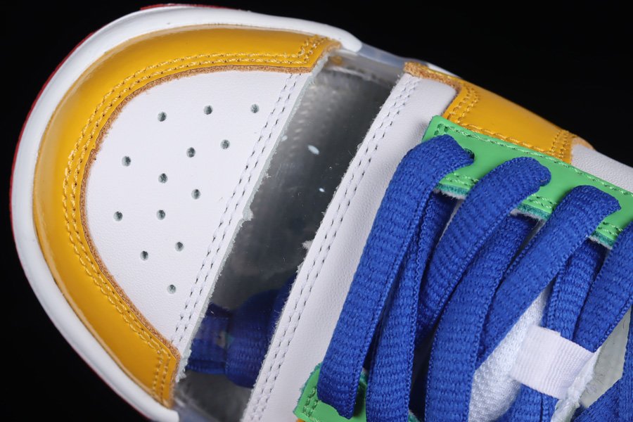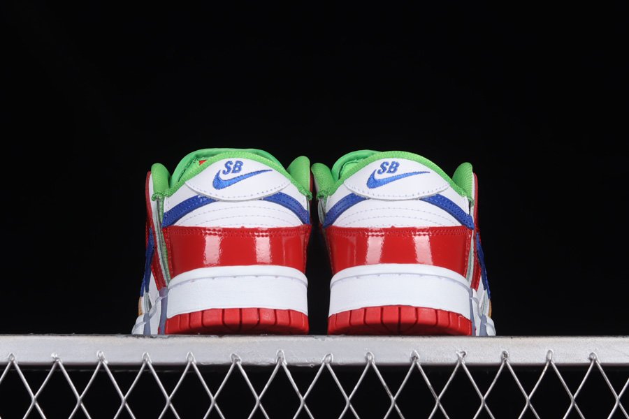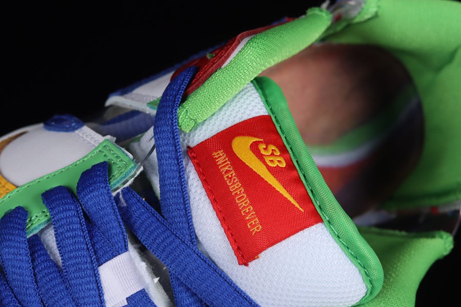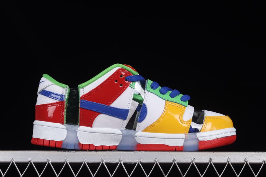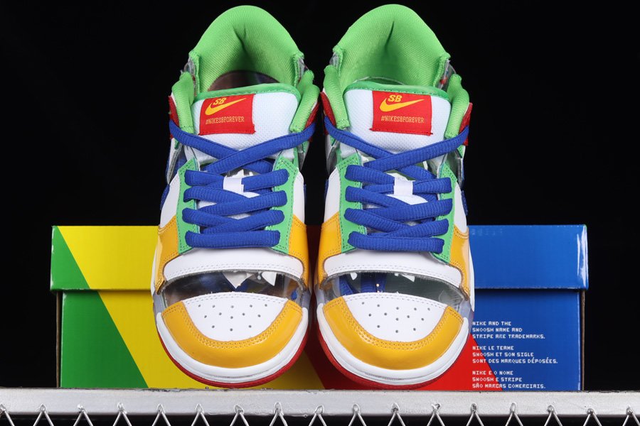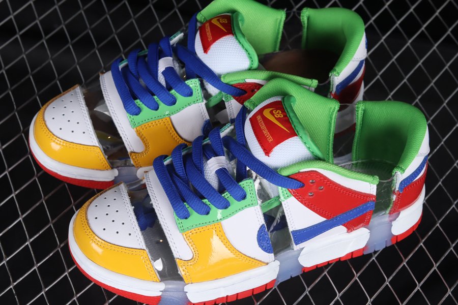 As suggested, the color scheme derives from eBay’s signature colors and incorporates “clear” stripes across the sole and side panels to symbolize the areas where the original eBay x Nike Dunk Low sample was sliced. Additionally, the heel panels incorporate the traditional SB branding instead of the exclusive eBay logo.