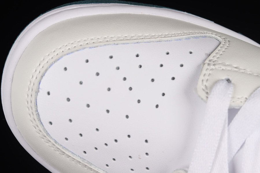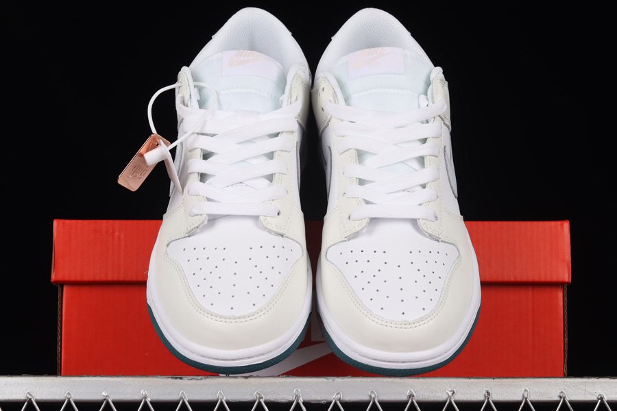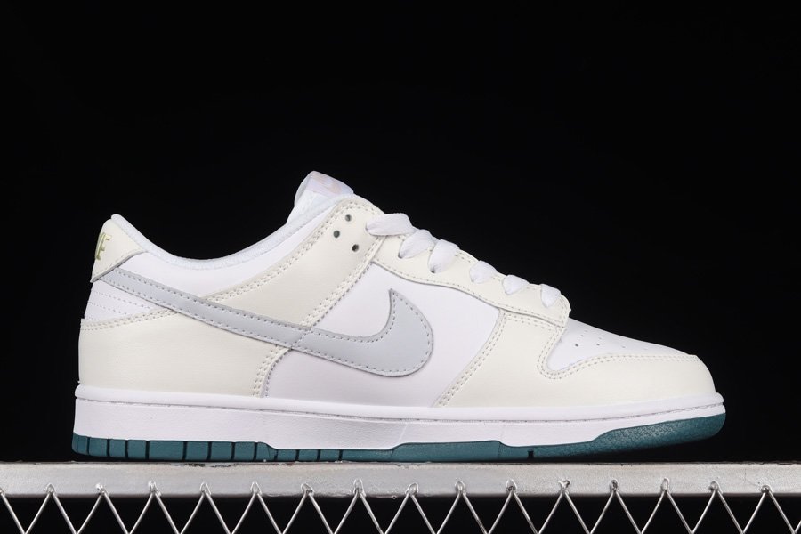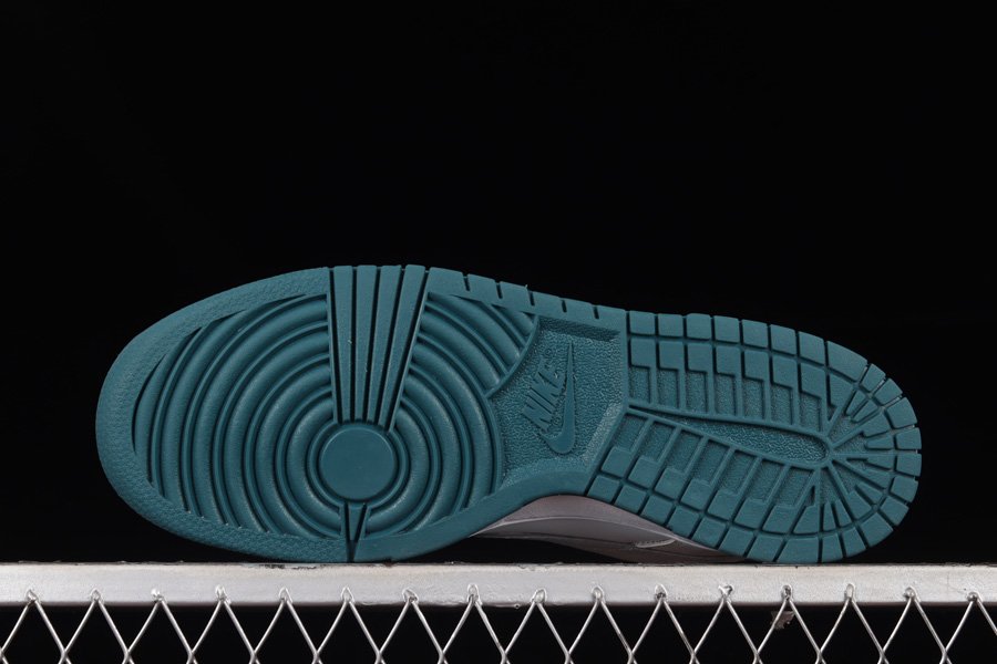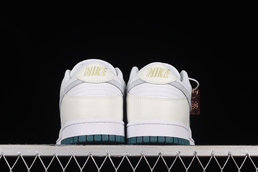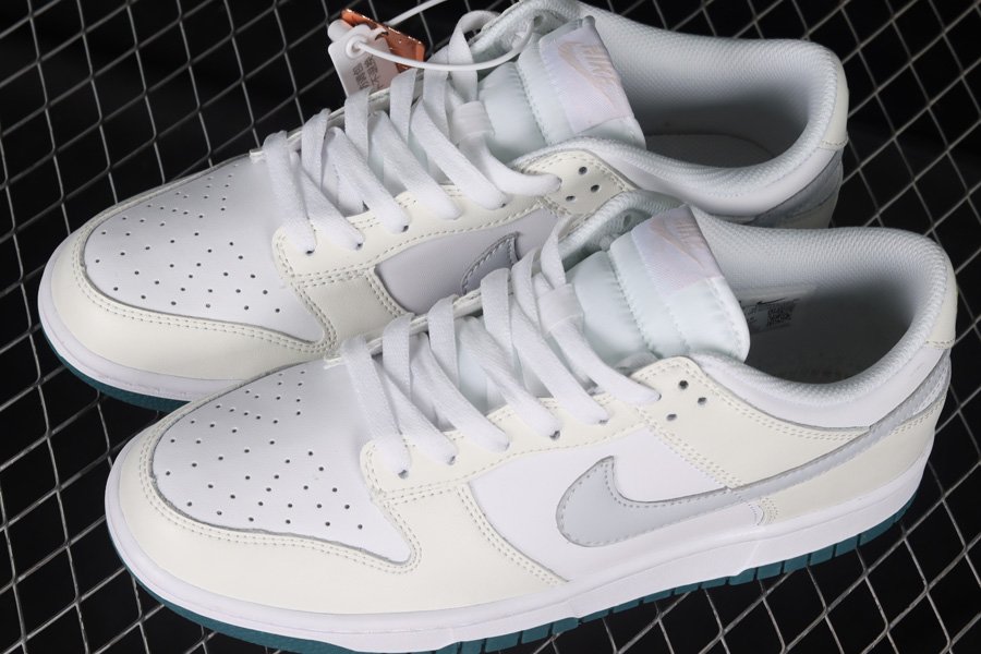 The Nike Dunk Low is back with a new iteration, featuring its signature leather construction and mesh tongues and lining. The shoe boasts a clean White base that perfectly complements the Grey Swooshes, which are highlighted by their unique coloration. Adding an extra pop of color to the design is a Teal Green rubber outsole that rounds out the shoe’s features. With its classic and stylish look, this Nike Dunk Low is a must-have for sneaker enthusiasts.