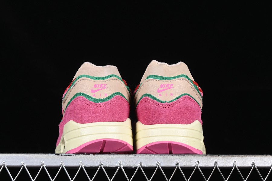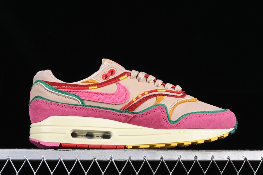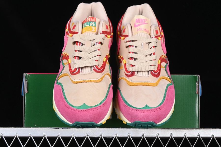 The Nike Air Max 1 “Familia” showcases a diverse blend of materials and an array of vibrant colors. The shoe incorporates a combination of mesh, leather, suede, and corduroy, with each material adorned in shades of “Pinksicle,” “Sanddrift,” and “Hemp.” To honor the Latino community, the “Familia” emblem is prominently displayed on the right tongue, insoles, and packaging. The design is completed with a “Sail” midsole, a visible Air unit in the heel for comfort, and a multi-colored rubber outsole.