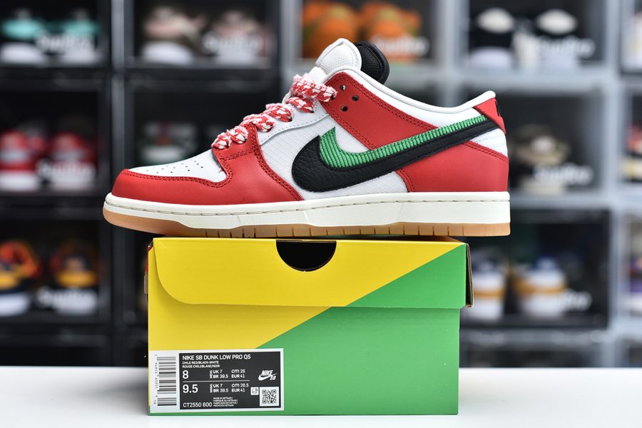The Frame Skate x Nike SB Dunk Low “Habibi” is a special pair designed in conjunction with the Dubai-based Japanese lifestyle culture boutique. Reflective of the United Arab Emirates flag with its color scheme, white tumbled leather is utilized for its toe box and collar section, while netted mesh-like material covers its side panels. Additionally, smooth red leather overlays, followed by double stacked Swooshes in black and green stripes further comprise its profile. Finally, special patterned laces, vintage style midsoles and gum rubber outsoles top off the style.