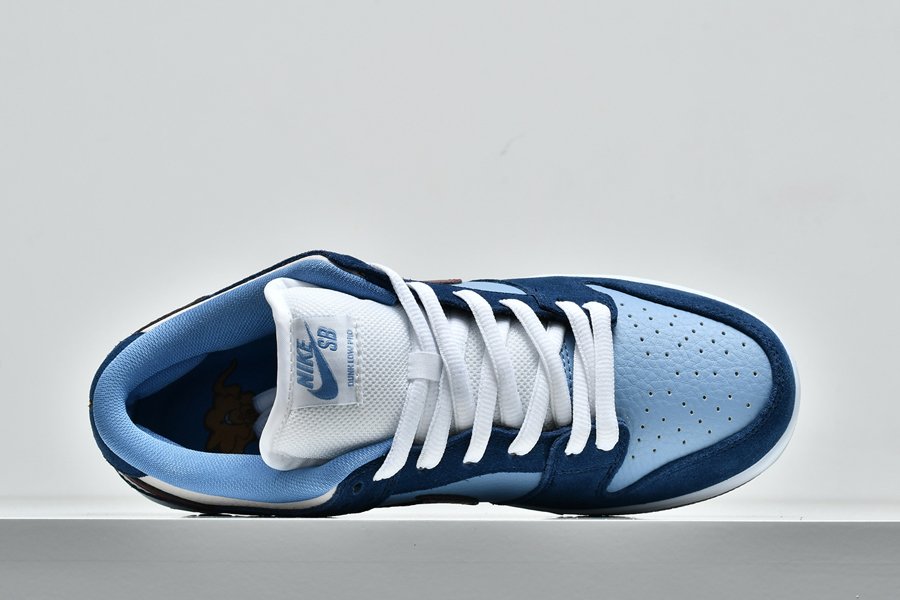 The blues used on the suede and textured leather are inspired by the video (and we mean OG VHS video) cover art, designed by Del The Funky Homosapien of Hieroglyphics.