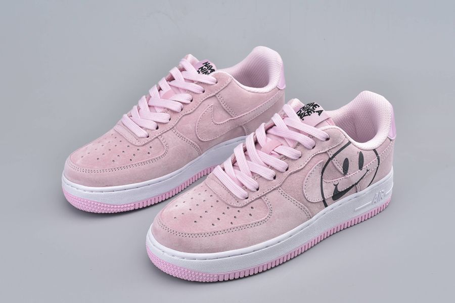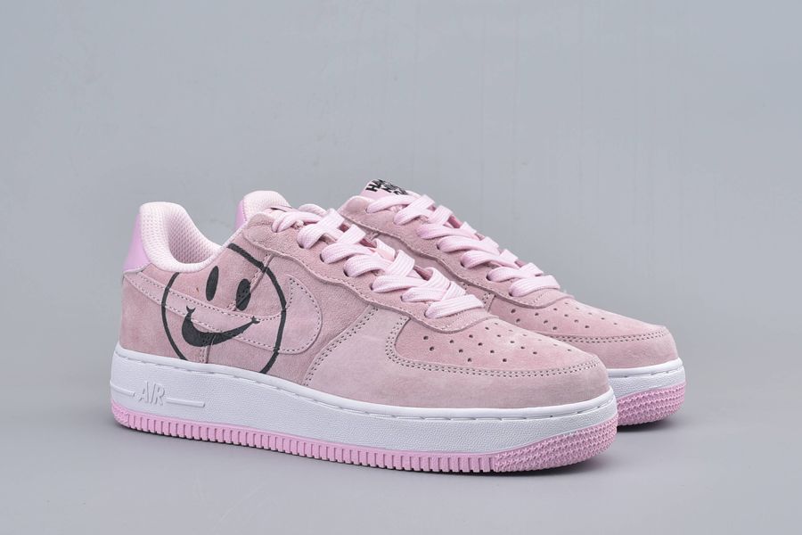 Tonal pink hues run throughout, giving a minimalist chic aesthetic. A large Nike Swoosh dominates the sidewalls, while pale pink laces tie the shoe together. Unlike the other silhouettes from the Have A Nike Day Pack, this sneaker doesn’t have the clip on lace jewellery. Instead, there’s a huge smiley face printed onto the back portion of the heel, with a Swoosh replacing the mouth, which gives the sneakers a cheeky edge.