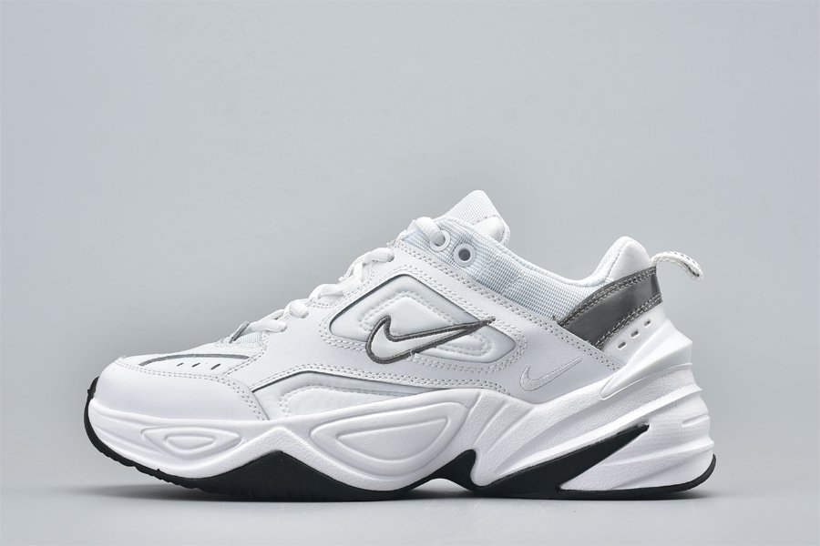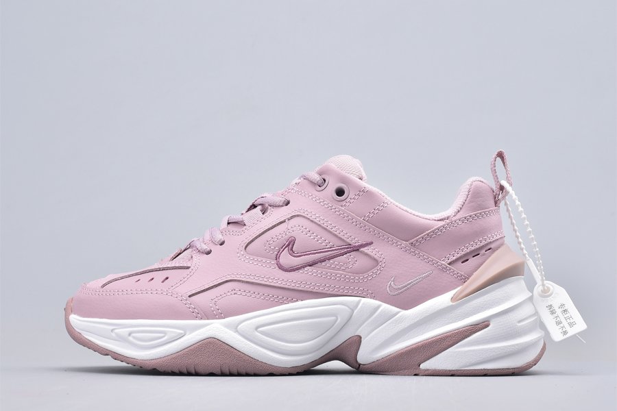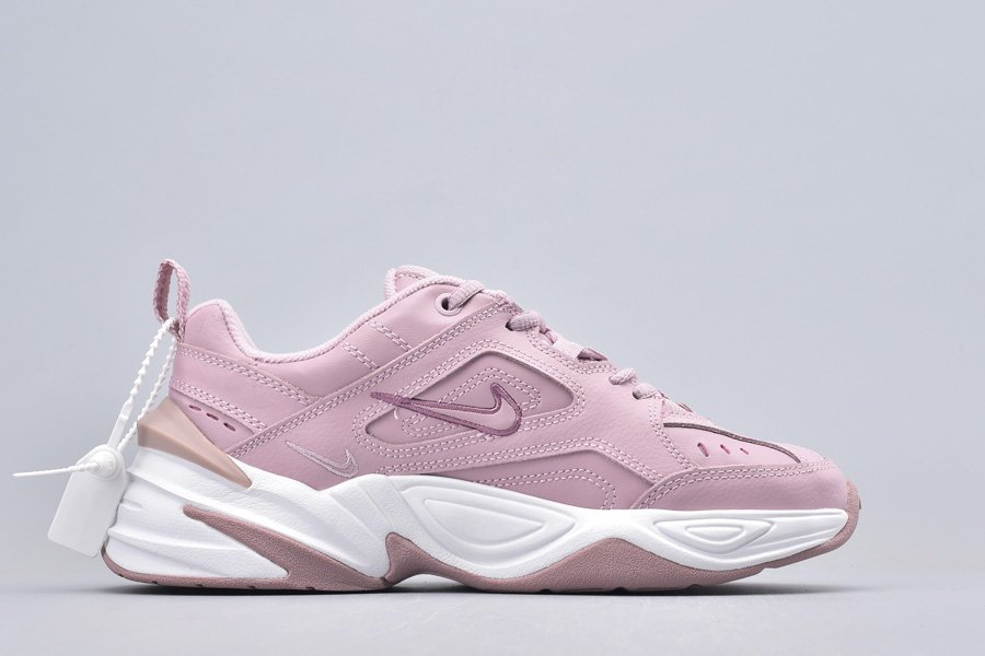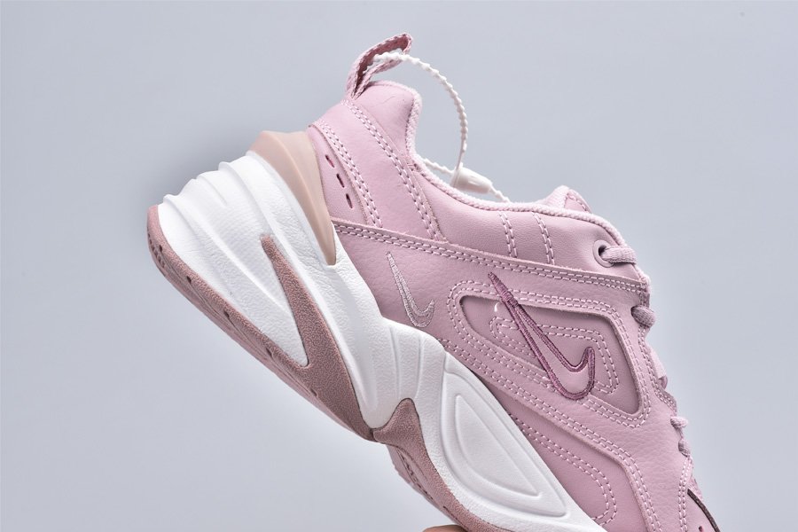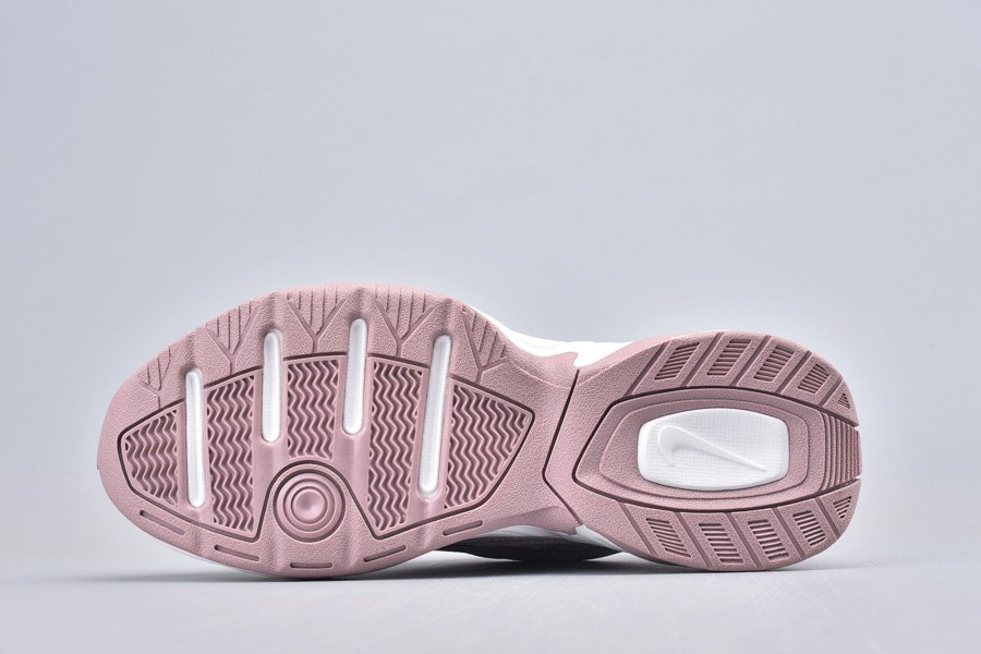 Plum Chalk embroidered mini Swooshes can be seen on the sidewalls of this sneaker, pairing up with the colour of the heel panel, tongue and inner. This heel panel adds not only extra support and durability to the Nike silhouette, but complements the design of the M2K too, creating an even thicker look.