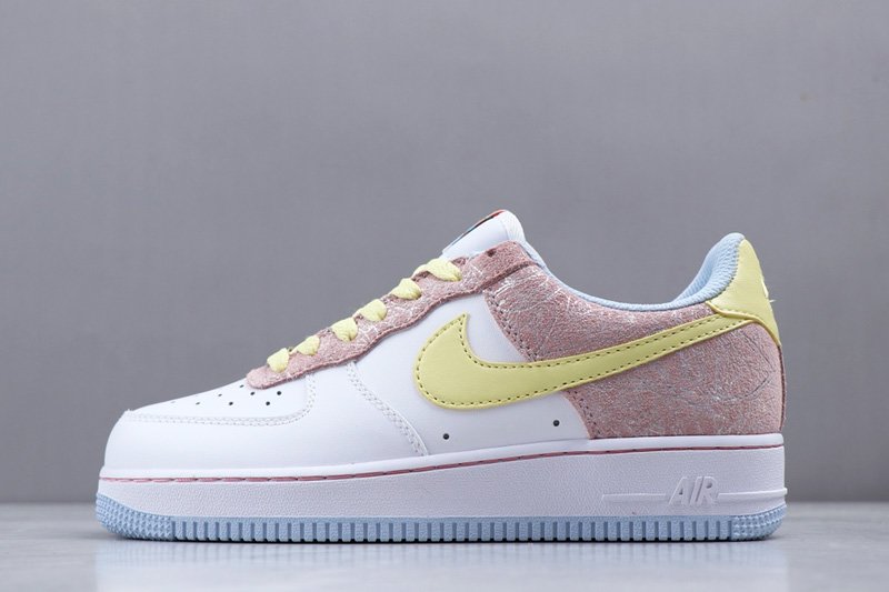 Grade-School Nike Air Force 1 White/Lemon Chiffon-Pink