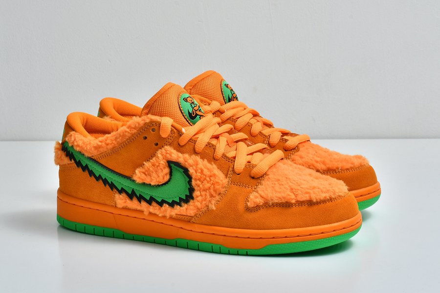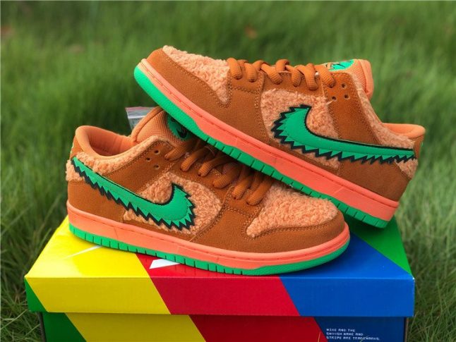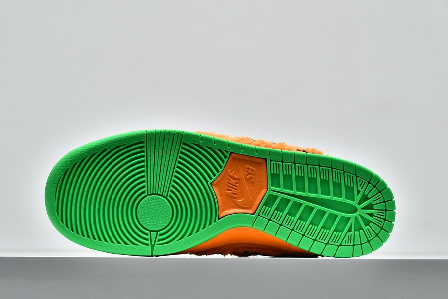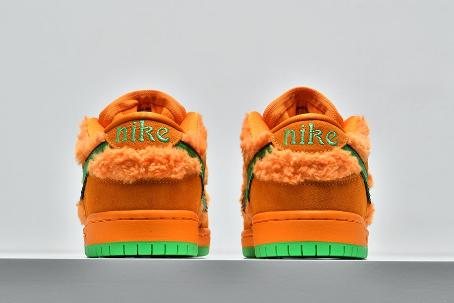 Donning fuzzy, faux fur uppers with suede overlays, the low-top model is detailed with a green jagged Swoosh as a nod to the bear’s jester collars, with more green appearing on the branded areas and outsole. Finishing touches include special bear tongue branding, and a stash pocket behind the tongue to store your special belongings.