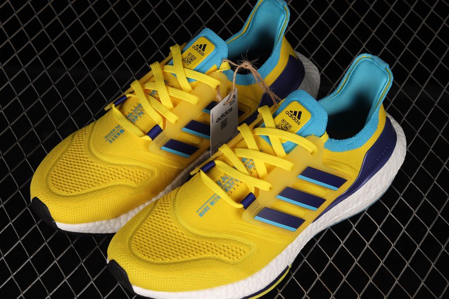 This iteration of the adidas Ultra Boost 2022 comes constructed in a Yellow Primeknit upper made of a high-performance yarn containing at least 50% Parley Ocean Plastic. Legacy Indigo and Sky Rush accent found throughout add some contrast to the bold design. A White Boost midsole atop a Continental rubber outsole round out the main features of the sneaker.