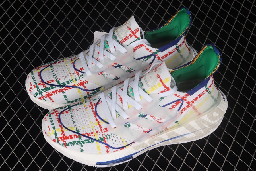 Opting for an eco-friendly approach, both pairs of the Palace x adidas Ultra Boost 2021 are constructed using recycled materials. Done in your choice of Black or White, design details on both pairs include a colorful pattern placed throughout the knitted build. Other features include the translucent cage overlays, the “Palace” branding on the lateral side of the Boost midsole as well as on the rear portion of the midsole. Additional Palace branding found on the triangle emblem patch on the tongues. A recycling logo right underneath the tongue branding rounds out the main features of the sneakers.