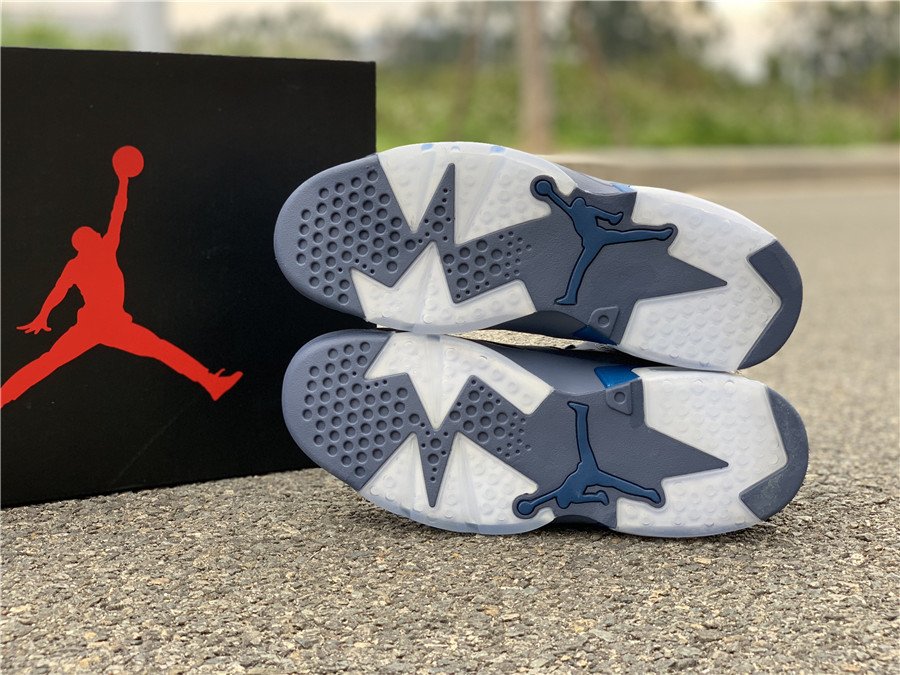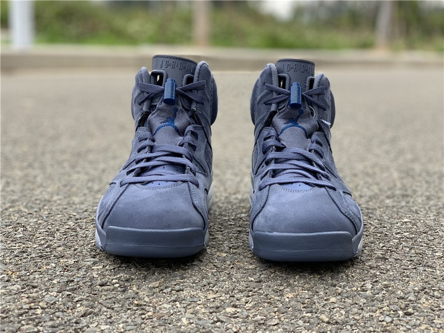 Originally rumoured to be Jimmy Butler’s signature shoe, the upper of the Jordan 6 Diffused Blue is constructed almost entirely of slate grey suede and leather, while accents arrive via bold royal blue hits on the midsole, heel tab, and throat’s neoprene cover. A grey midsole and icy translucent outsole then round off the look.