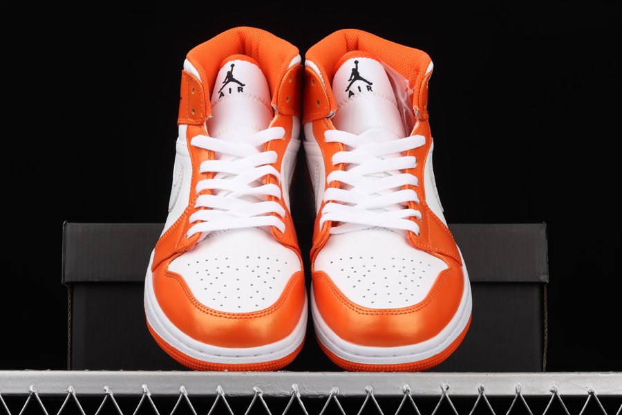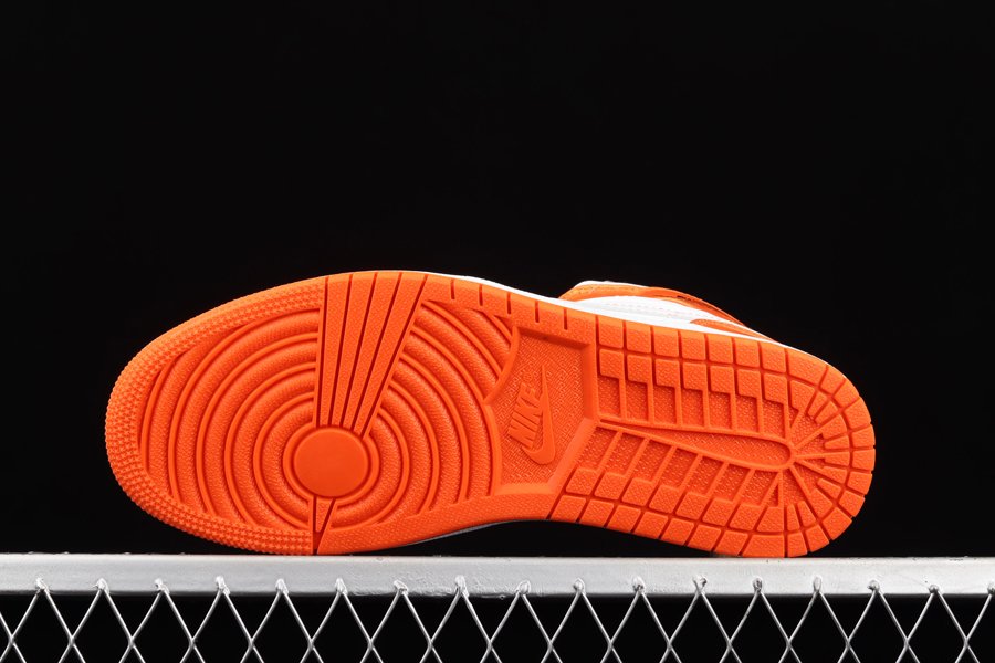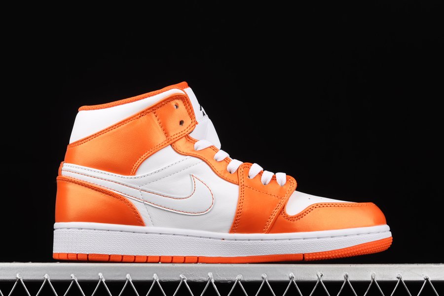 Just based off the way it blends together its vibrant titular hue with neutral tones, this pair is somewhat reminiscent of the “Syracuse” Nike Dunks that released earlier in the year. The overlays and ankle flaps are dyed with “Electro Orange” hue, and comes balanced out with crisp white that fill in the toe boxes, tongues, collars and mid-foot. Swooshes are also executed in white and come bordered with broken up stitching thats colored with its nominal shade. Smaller notes of black also get brought to the table and drop off on the Jumpman tongue logos and ball-and-wings embellishments. Down under, the bottoms are formed with colorless midsoles and a full “Electro Orange” outsole.