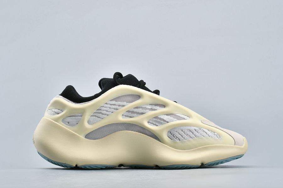 Unlike the first two iterations of the adidas Yeezy Boost 700, the V3 version is redesigned completely. Departing from the leather and suede build prominent on the Yeezy Boost 700 and 700 V2, this V3 “Azael” rendition is defined by a molded all-over sail cage, contrasted by a black tongue and sockliner, all of which are composed of neoprene. Unlike the original and V2 version of the 700, the Yeezy 700 V3 does not incorporate a Boost midsole, but instead, boasts an all-new cushioning technology to top it all off.