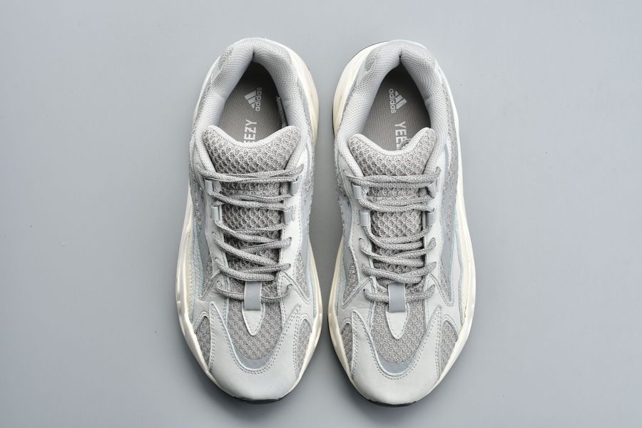Coming in a white and tonal grey, this sneaker is all about the silhouette and this colourway only further accentuates the shape of the adidas Yeezy 700 V2 Static.