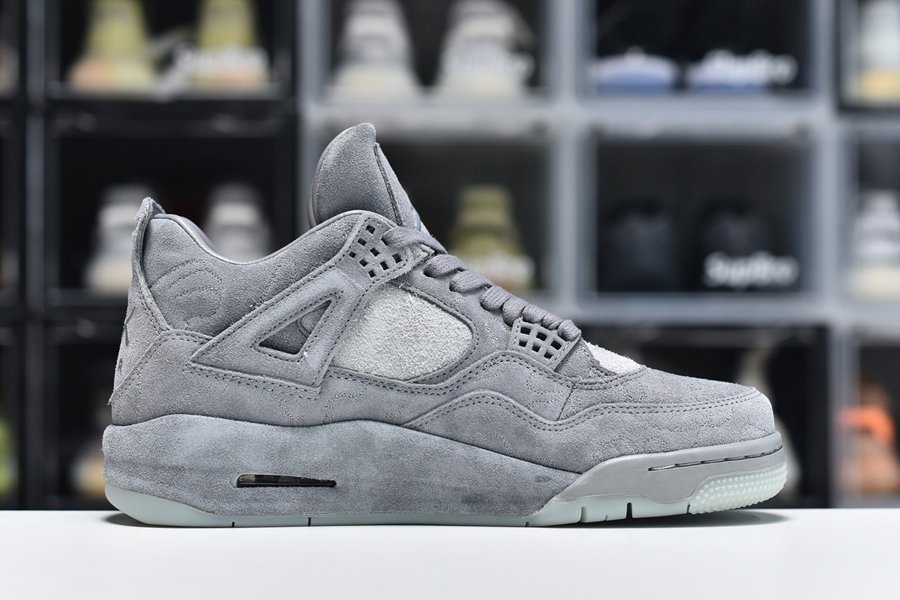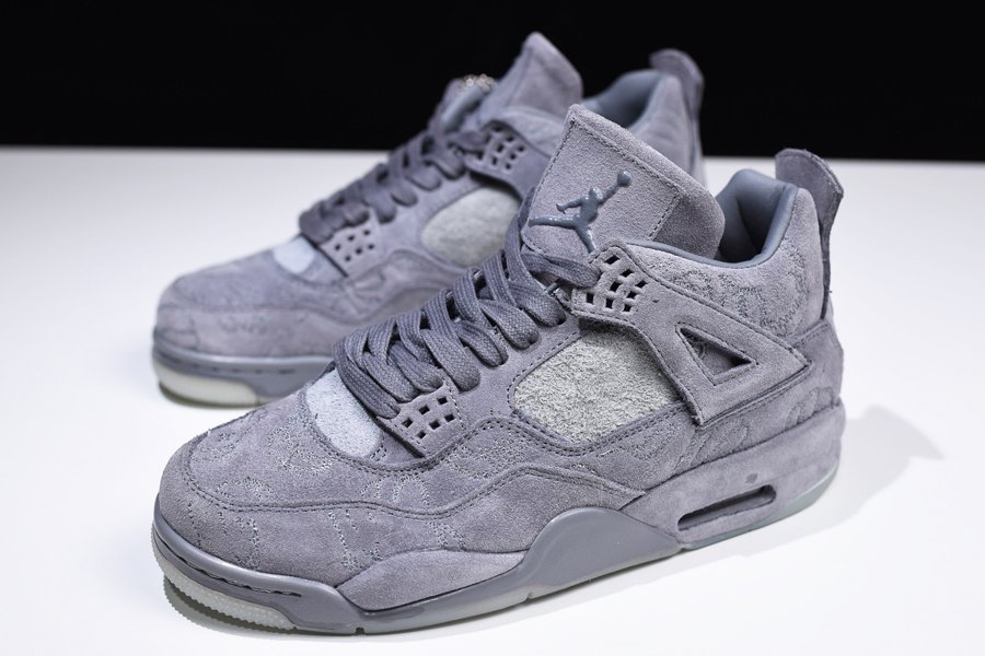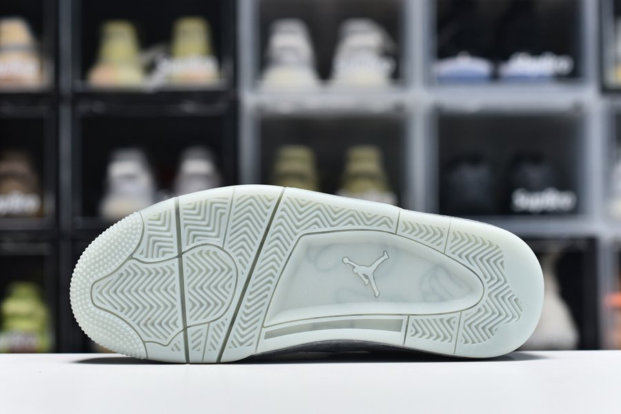 This Air Jordan 4 by KAWS is highlighted with Cool Grey across the uppers. Constructed with a premium theme, they feature smooth and long hair suede across the uppers while the KAWS hang-tag matches. Following we have a glow in the dark outsole which is translucent that exposes KAWS graphics.