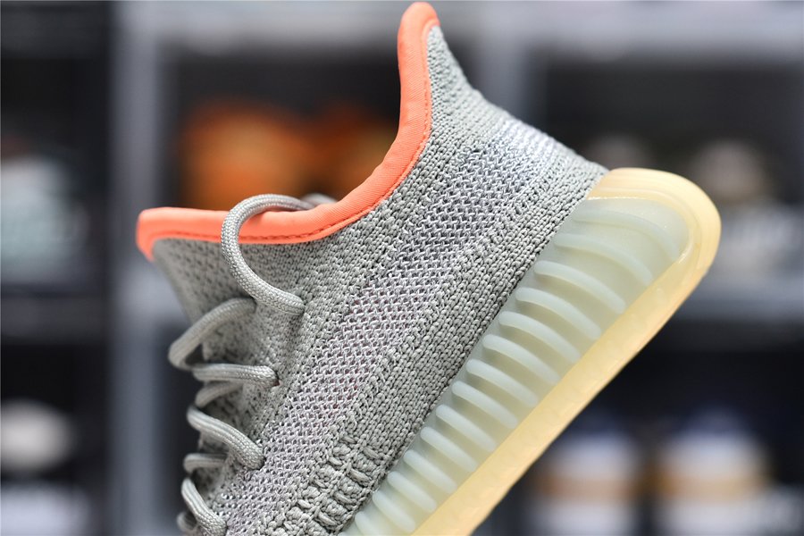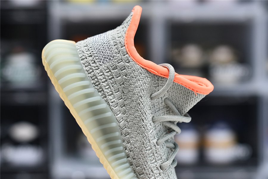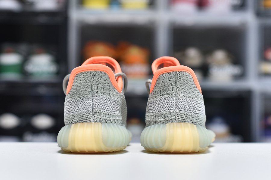 The kids adidas Yeezy Boost 350 V2 ‘Desert Sage’ applies a military-inspired color scheme to the minimalist lifestyle silhouette, highlighted by a bright pop of orange on a subtle green knit upper. Reflective thread is woven into the monofilament side stripe for added visibility in low-light conditions. Secured with traditional lace closure, the lightweight build rides on a Boost midsole, encased in semi-translucent green rubber.