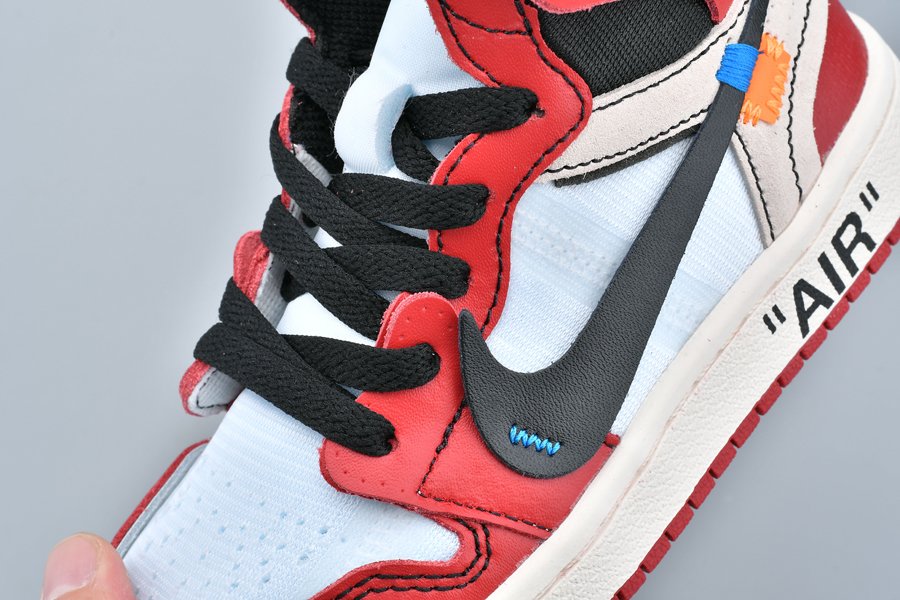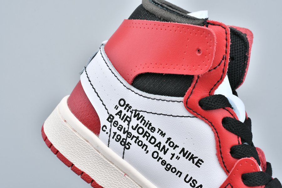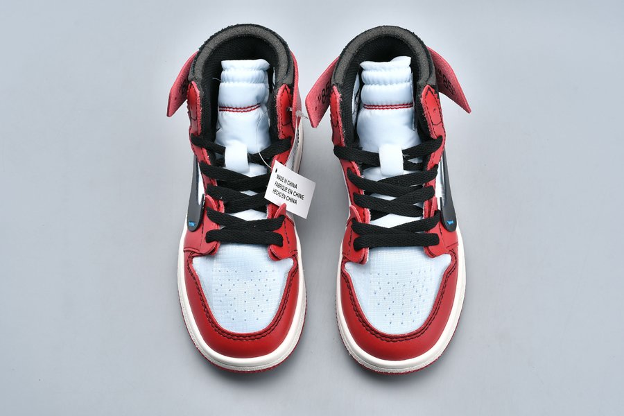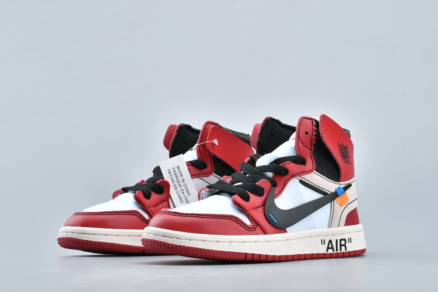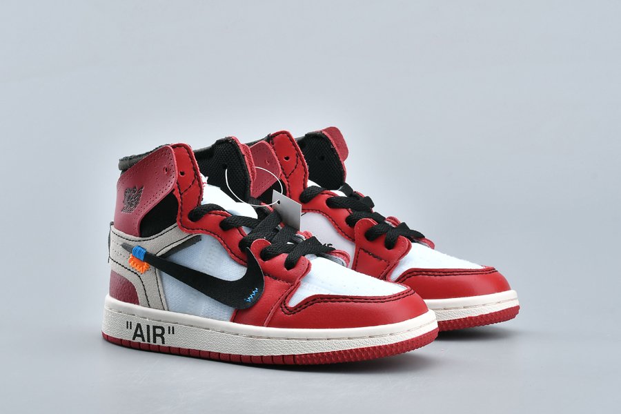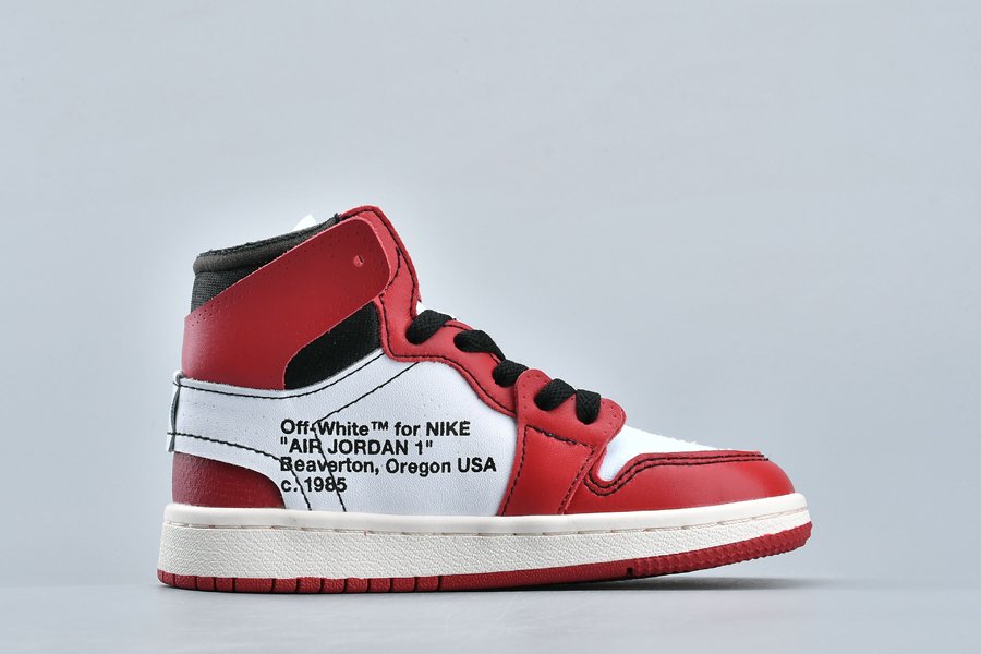This Kids Off-White x Air Jordan 1 “Chicago” comes in the original Chicago-themed white, black and varsity red colorway. Featuring a white, red and black-based deconstructed leather upper with a Swooshless medial side branded with “Off-White for Nike Air Jordan 1, Beaverton, Oregon, USA © 1985.” Other details include: floppy ankle collars with hidden “85” written on the inside, an oversized off-centered Swoosh on the lateral sides, “Air” written on the midsole and the word “Shoelaces” on the laces with no branding on the tongue.