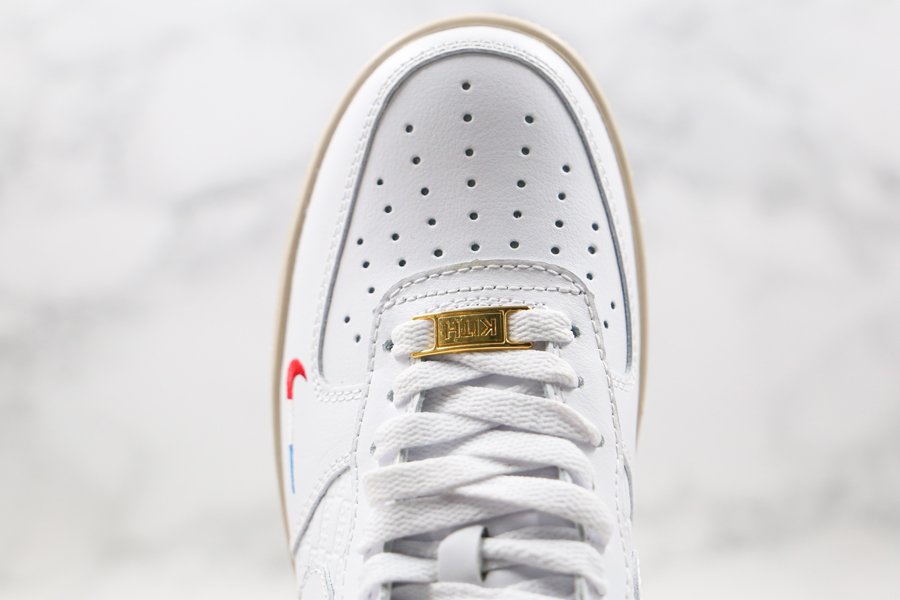 Featuring a white leather base, the design is largely similar to the Japan pair that released early this year. Embossed Kith branding features on the midsection, with a tricolour mini Swoosh appearing on the toe. This same tricolour design can be seen on the tongue, referencing Kith’s location in Paris. Subtle branding can be seen on the tongue as well as the heel in the form of “Kith Air:” a theme that has run through all of Ronnie Fieg’s Air Force collabs. A navy velour sockliner adds to the premium feel of this shoe, with a beige midsole and matching sole bring this shoe to a close.