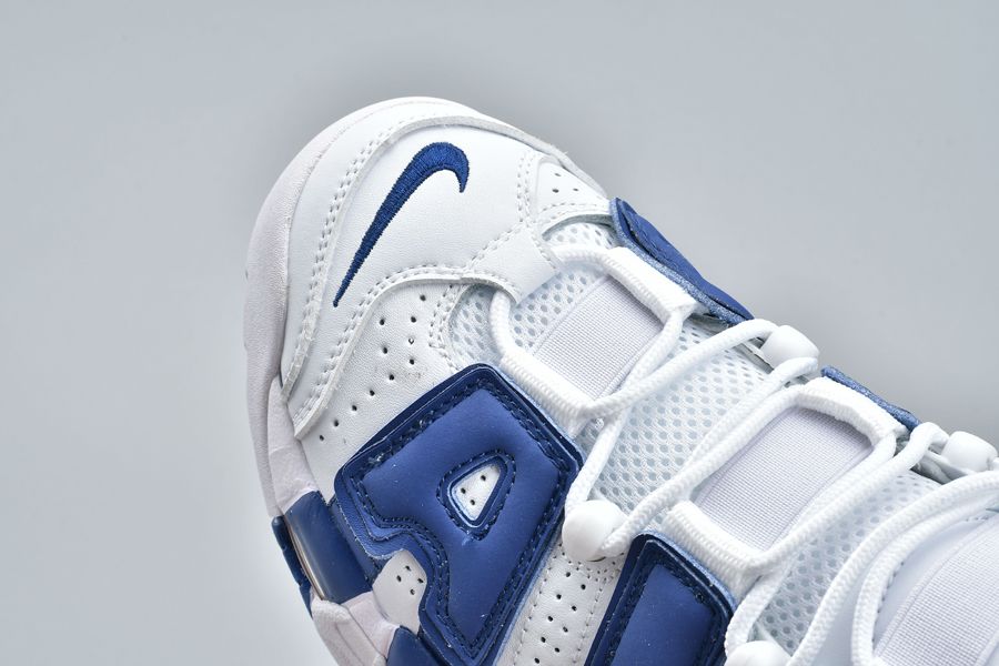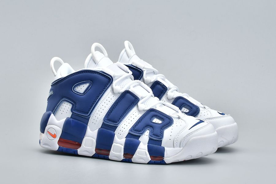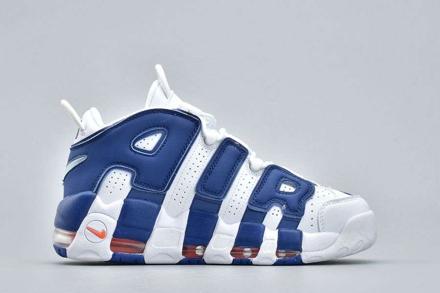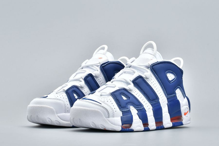 This Nike Air More Uptempo Knicks comes dressed in White, Blue and Orange which matches perfectly with the Knicks. Using White across the base, Royal Blue lands on the large ‘AIR’. In addition, we have Orange accents while White covers the outsole. Finishing the look is the number 33 on the heel which references Scottie Pippen and Patrick Ewing.