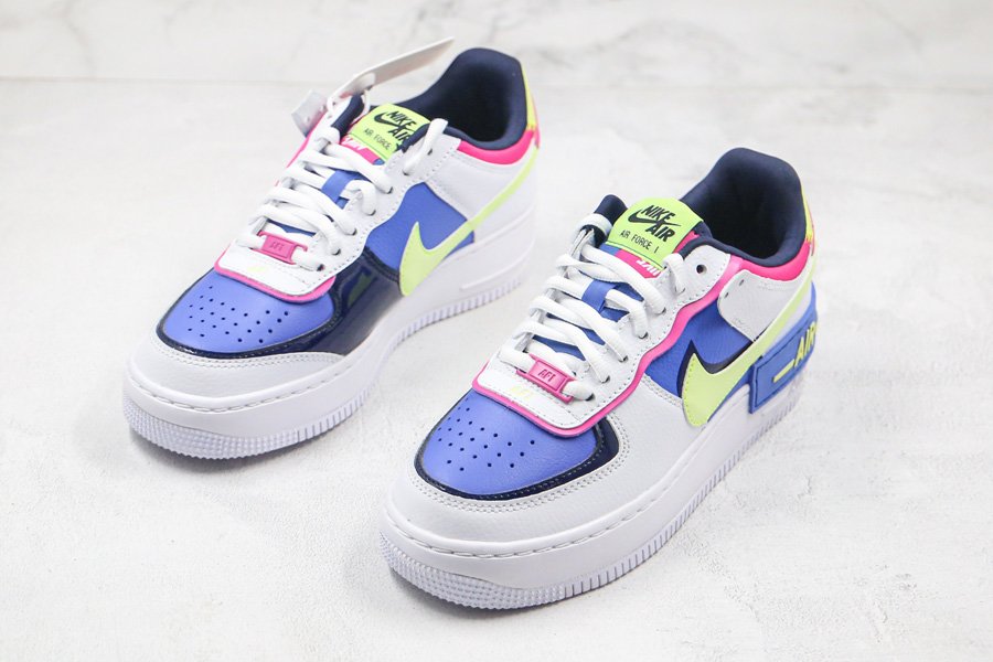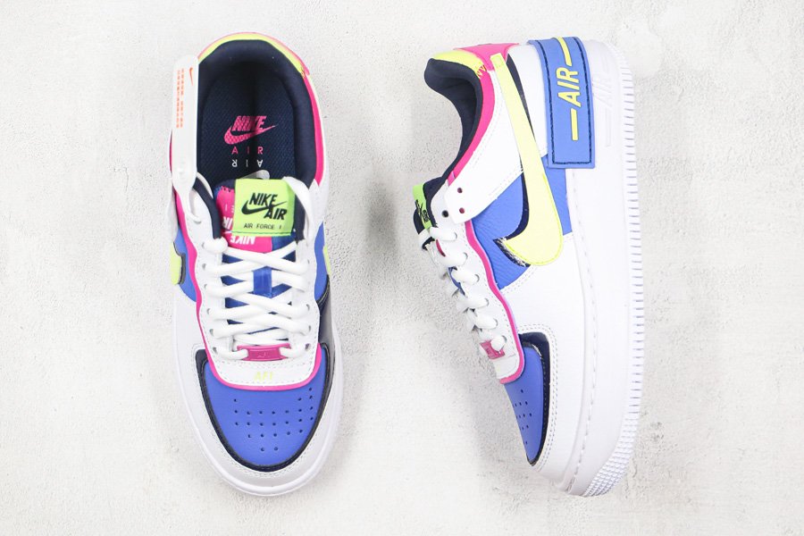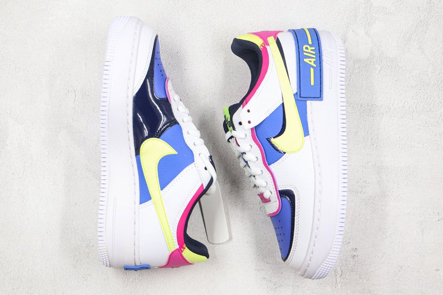 The women’s exclusive Nike Air Force 1 Shadow is showcased in another all-new colorway which takes on an array of hues. Not a stranger to using bright pops of color to highlight its double layered features, this low top iteration of the Air Force 1 gets done in White all throughout the overlays as a variety of colors that include Sapphire, barely Volt, and Fire Pink are placed on the toe, side panels, tongue, ankle, and heel. Black has also been added on the inner liner and trim for some more contrast while a white rubber sole unit wraps things up.