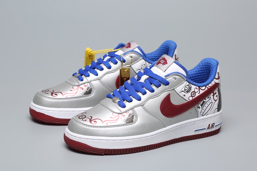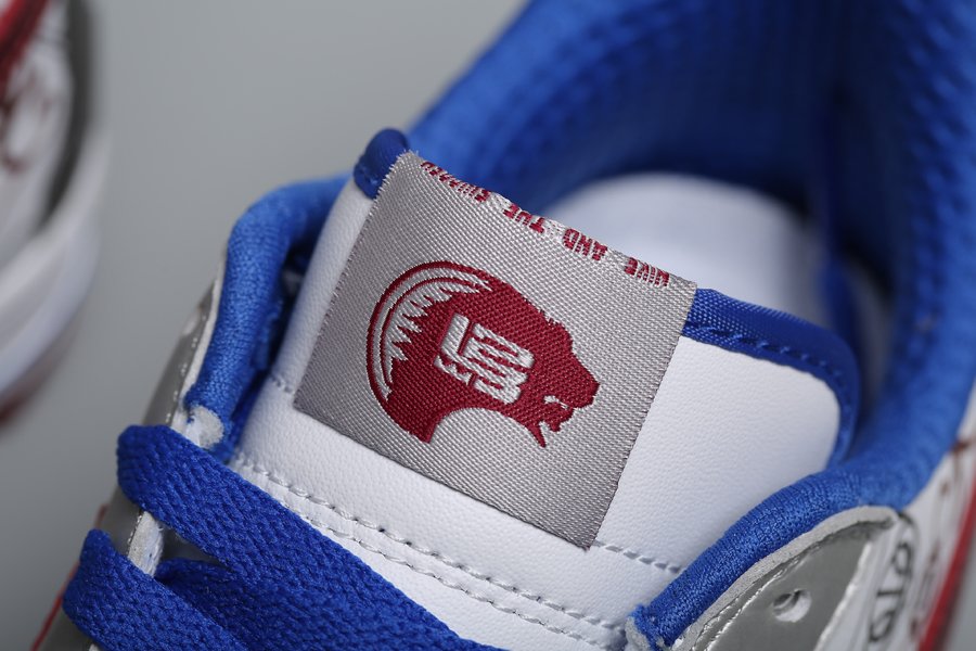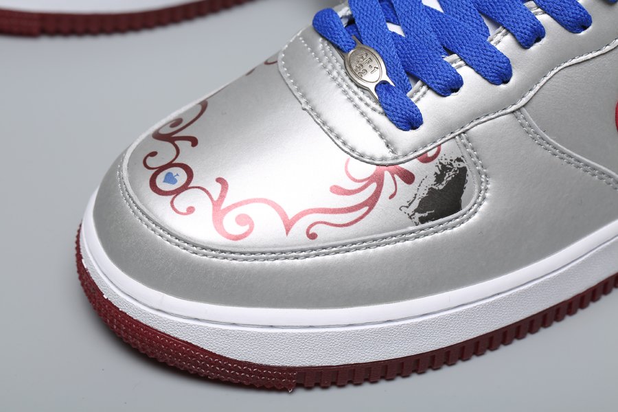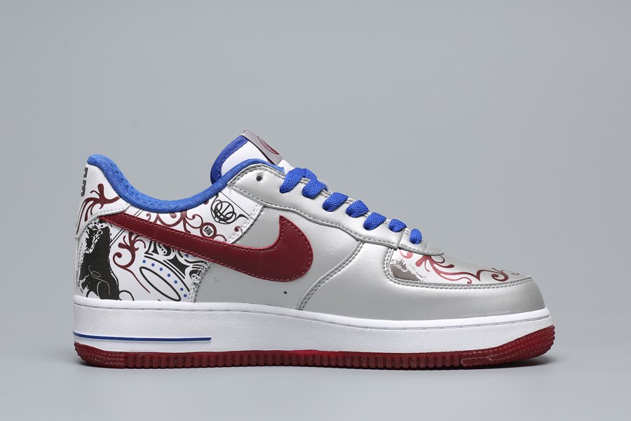 Released in 2006, the Air Force 1 Premium (Lebron) ‘Collection Royale’ is a tribute to some of Nike’s best athletes including Serena Williams, Ronaldinho and LeBron. The design features a metallic silver upper with a graphic crown print, red Swoosh, and blue laces and liner. Underfoot, a crisp white full-length Air sole is topped off by a red rubber outsole.