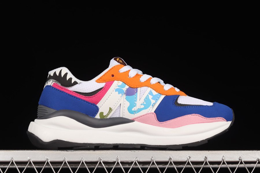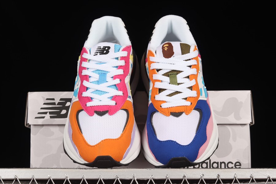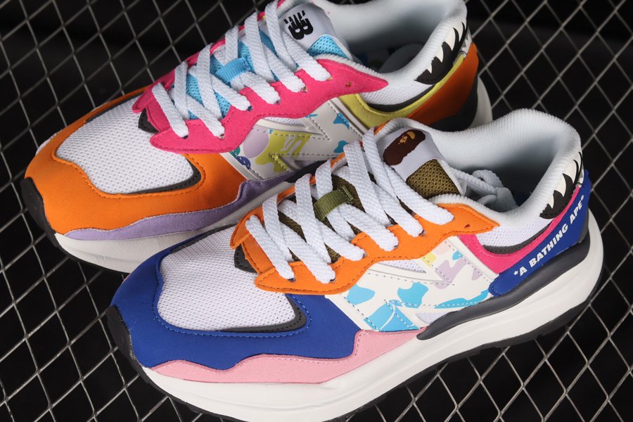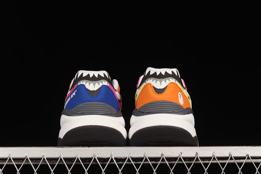 Unlike its counterpart, the second offering is layered in a multi-colored palette featuring hues of orange, pink, blue, and yellow. The pair includes A Bathing Ape branding on each side of the heel, followed by “N” logos covered in multi-camo. Highlighting the iteration is BAPE’s signature Sharktooth detailing on the heel. For the finishing touches, the pair features co-branding on the tongues along with a white and black sole unit.