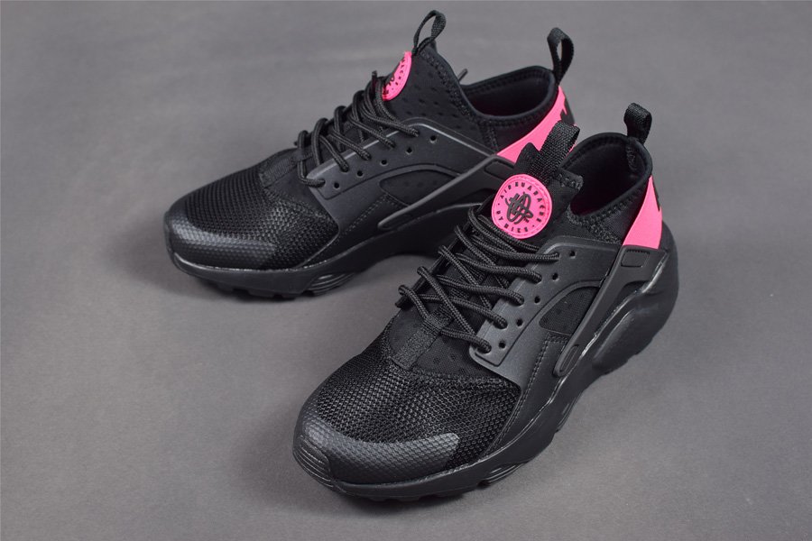 The Nike Air Huarache Ultra Premium Black-Hyper Pink Shoe features takes the classic Huarache to new levels of comfort with a combination midsole/outsole that drastically reduces the overall weight of the shoe. Textile and synthetic leather upper for lightweight comfort Neoprene overlays provide a supportive fit Phylon midsole/outsole for lightweight cushioning Strategically placed rubber pods for durable traction