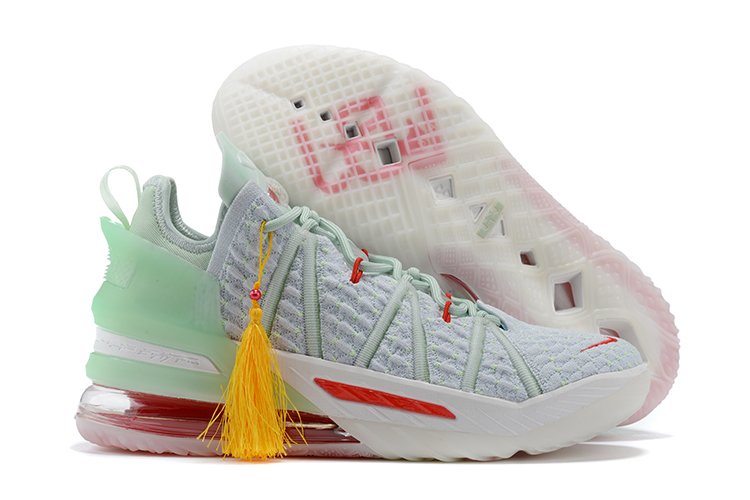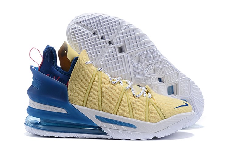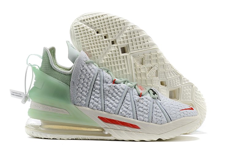 The LeBron 18 features a split design, with the heel/rear representing armor and strength with a beefy Max Air unit and reinforcement for stability, while the front represents speed and agility. The shoe features a first-of-its-kind combined Max Air and full-length Zoom Air unit for supreme comfort and responsiveness on-court. LeBron models have generally been grounds for Nike to try out all-knew knit uppers, and the 18 seems to be no different: the shoe uses “raised dimensions from the 15’s Battleknit, the high-tenacity yarns from the 16 and the TPU yarns that composed the 17’s exoskeleton.” Finally, the LeBron 18 features an all-new style of cosmetic Air in the shoe’s tongue and improved traction on the outsole.