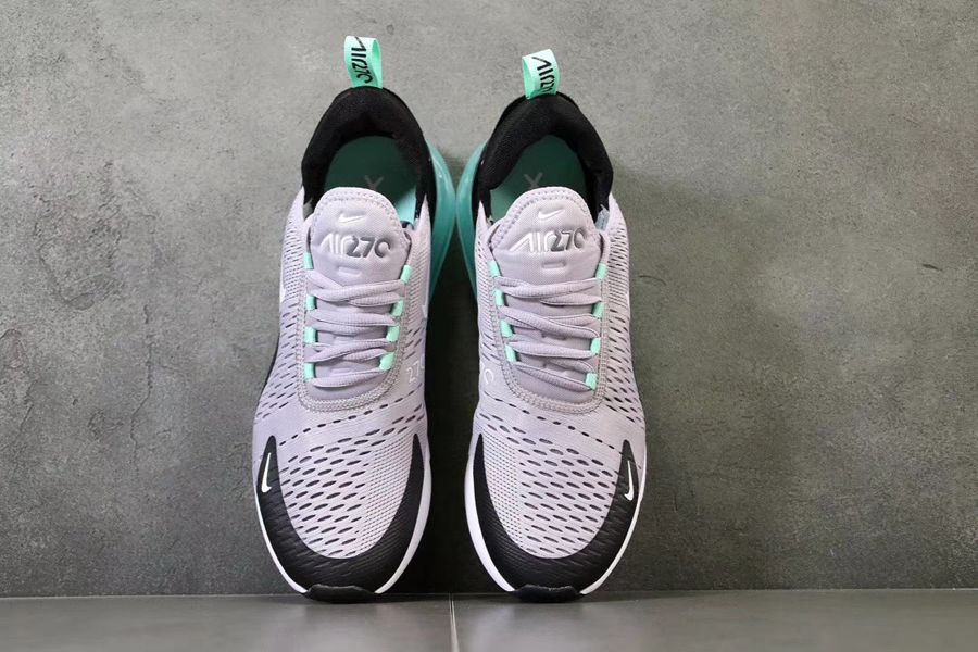 The Men’s Air Max 270 delivers a grey mesh based upper, hints of mint, and clear mint coloring on the heel. The foam midsole is enlarged with a max air unit bubble for a comfortable all-day wear.