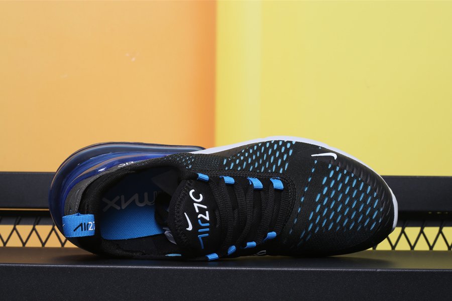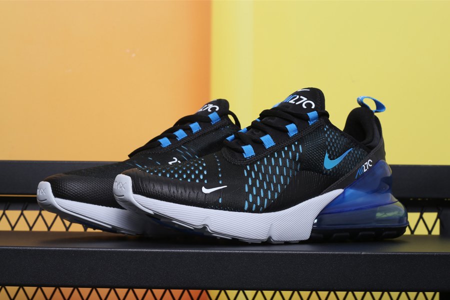 Boasting an all black knit upper, the Nike Air Max 270 Black Photo Blue Blue Fury Pure Platinum is one of the more versatile sneakers out there. Playing around with the Swoosh’s latest obsession with black and blue trainers, this is the perfect all year round sneaker. Down below, a foam midsole is present, followed by a glossy blue Air unit which sits around the heel for additional comfort and a smoother stride.