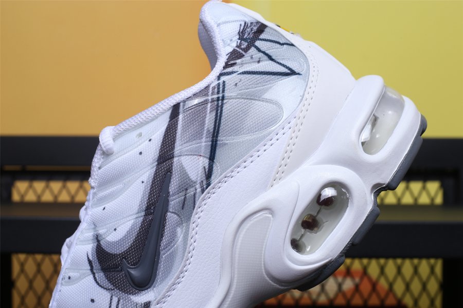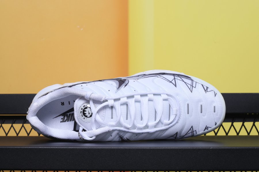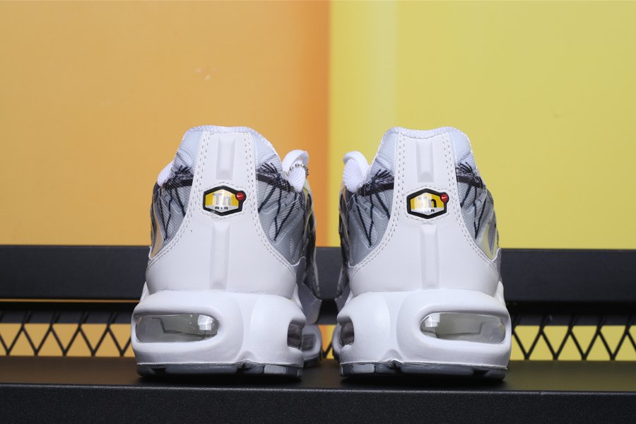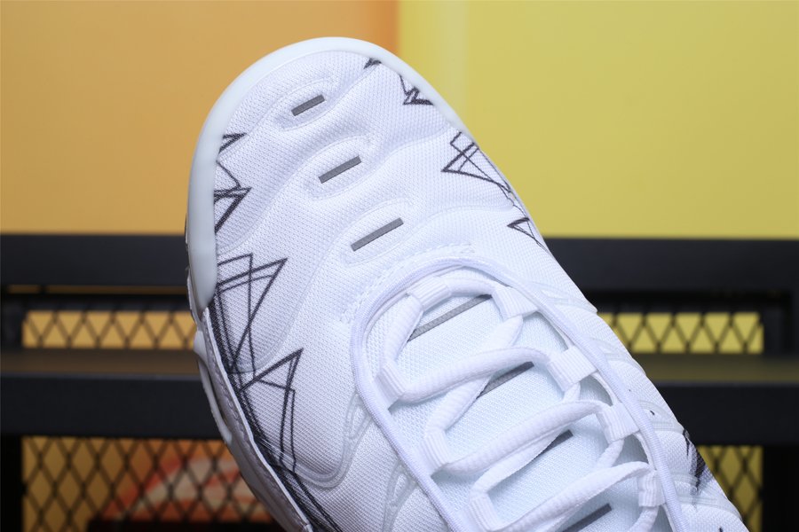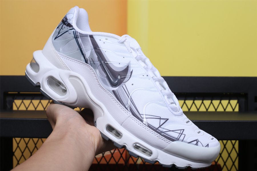 Keeping in line with Nike’s current trend of adding unique patterns onto their sneakers, the TN Air Max Plus White is painted in an ultra clean all white colour palette. The hue is disturbed with a black geometric motif that hits the lateral and medial side panels, following by a giant Swoosh logo. Around the back “Tn” branding is present, and down below, an Air infused midsole, complete with visible bubbles, makes these some of the comfiest creps in the market.