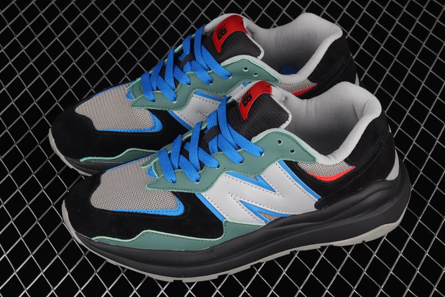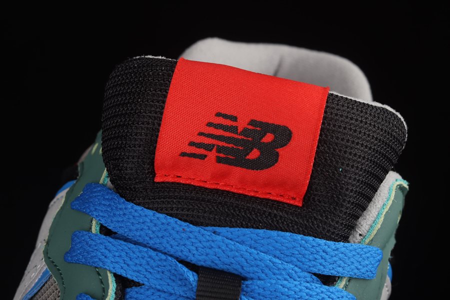 The 57/40’s multilayered upper allows for plenty of colour options, and the collaborators have taken full advantage of this by using a bold selection of black, grey and green, plus some additional blue and orange accents for good measure. With so many panels on offer, there’s also a good mix of materials, including classic NB mesh, fine nubuck bumpers, suede counters, and a massive reflective N logo.