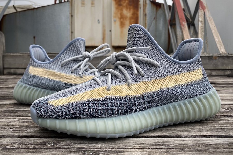 This new flavor of the Yeezy Boost 350 V2 gets covered in various shades of blue all throughout the lightweight Primeknit construction on the upper with tan stripes hitting the lateral side panels. Grey/blue detailing on the rope laces and collar along with a two-tone Boost cushioned sole finish off the look.