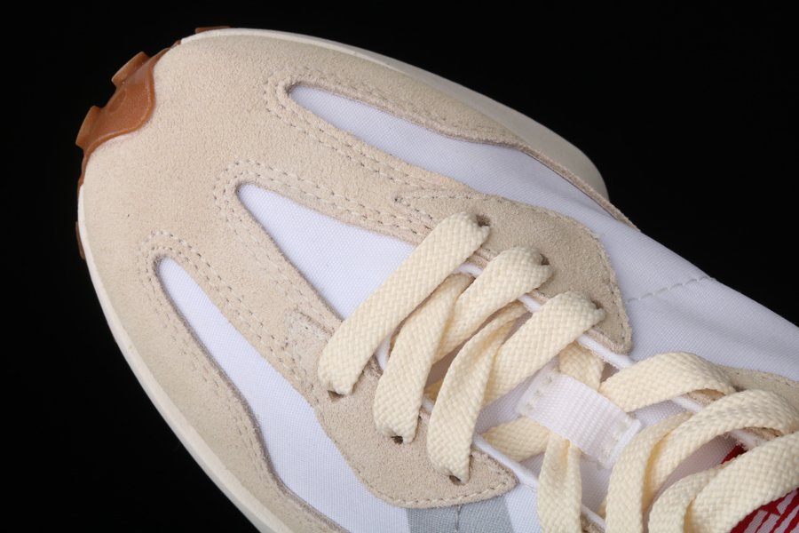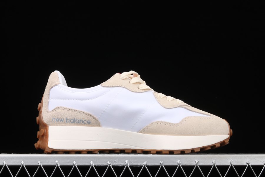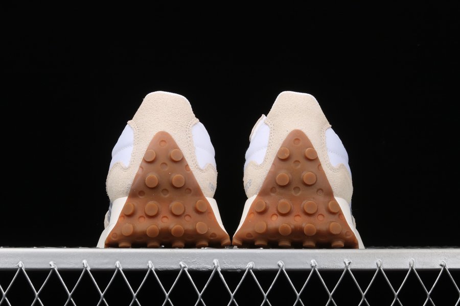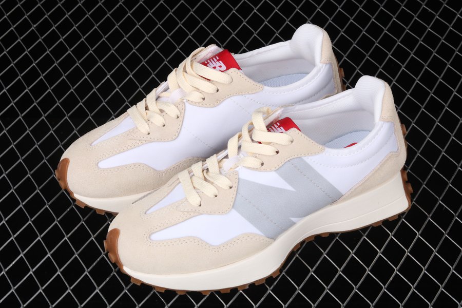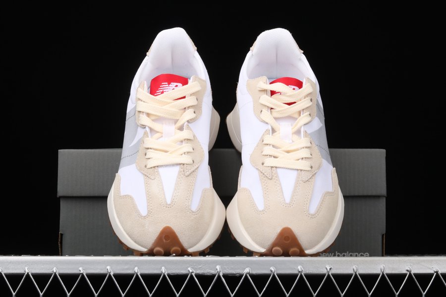 The New Balance 327 is a retro inspired silhouette that riffs on vintage performance runner aesthetics in a lightweight, stylish, and succinct package. One of several versatile designs of the New Balance 327, the neutral based “White” colorway features Turtledove suede overlays on the toe, forefoot, eyelets, and heel that contrast the white nylon base of the shoe. Oversized grey “N” branding can be found on either side. The red tongue tag displays white “NB” insignia. The underside of the tag features “Intelligent Choice” text in white lettering. A white midsole and gum traction outsole round out the look of this timeless shoe.