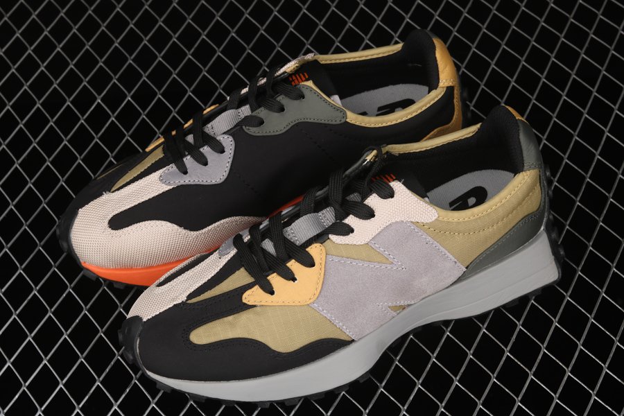 Decked out in an eye-catching combination of gold, grey and black, this pair will no doubt be an absolute dream to work into outfits of any kind, with unexpected hits of vibrant orange adding another layer to the complex design. New Balance’s signature N logo is located on the lateral sides in an oversized rendition for a maximalist take on branding, along with a classic lacing system.