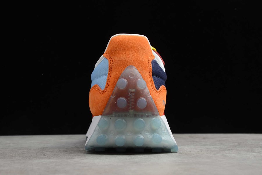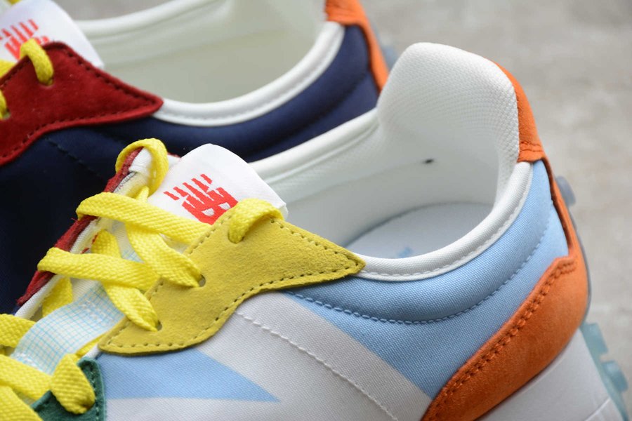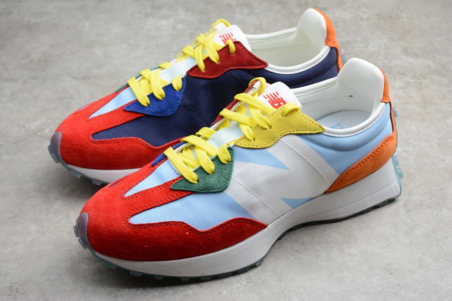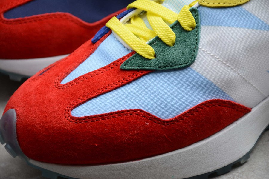 The New Balance 327 Kawhi Seismic Moment is composed of a suede and fabric vamp. A palette of bright colours inspired by the Richter scale sublimates the creation, including red, green, yellow, blue and orange. A New Balance branding symbolized by the N side and a white midsole bring a touch of sobriety. Finally, an outsole translucent blue finalizes the whole thing.