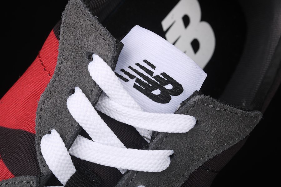 The construction sees a neat blend of mesh underlays and suede overlays, predominantly hued in a dark grey tone. The look is contrasted with the footwear label’s oversized N logo across the lateral side, joined with white accents adorning the laces forefoot and additional NB branding details on the tongue and insoles alike.