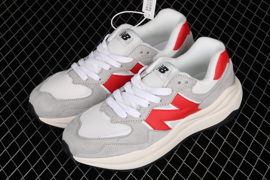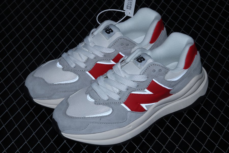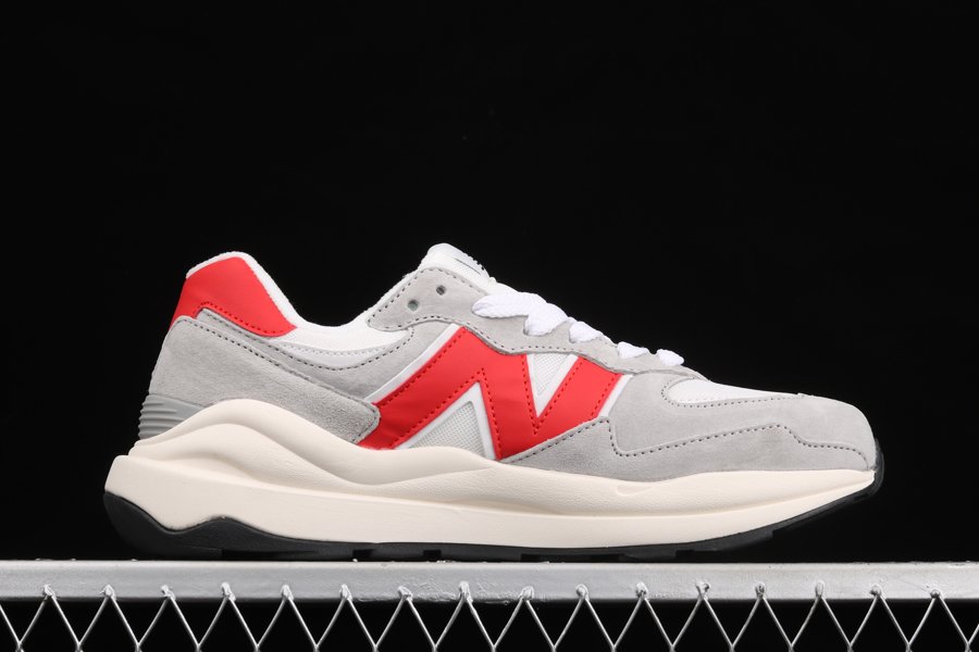The 57/40’s uppers are reinterpreted with ’80s and ’90s influences. At the top of the shoe is a “NB” tongue tag, complemented by premium suede panels that start at the quarters and cover most of the shoe’s lower body. Popping out in a bright red color is a double-stacked “N” logo at the sidewalls to match the heel tab at the back. Furthermore, an understated cream palette is seen on the laces and toebox, while a vintage white midsole rounds off the shoe’s designs.