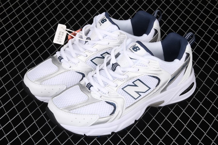 We’re still not over the dad shoe trend and this white and navy New Balance 530 is a must cop if you’re a fan of that look. Lightweight mesh dresses the upper delivering the perfect level of breathability, whilst shite leather panels overlay for support. This sneaker puts a contemporary spin on a tennis-style silhouette with accents of navy blue creating a trim around the heel and sidewall. Touches of metallic silver add a tonal touch with the iconic ‘N’ logo overlays across both side panels.