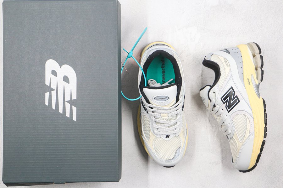 Aside from the 2002R markings below the ankle and New Balance “N” branding gracing the rear, midfoot and vamp, thisisneverthat’s logo appears on the tongue and turquoise color printed insoles.
